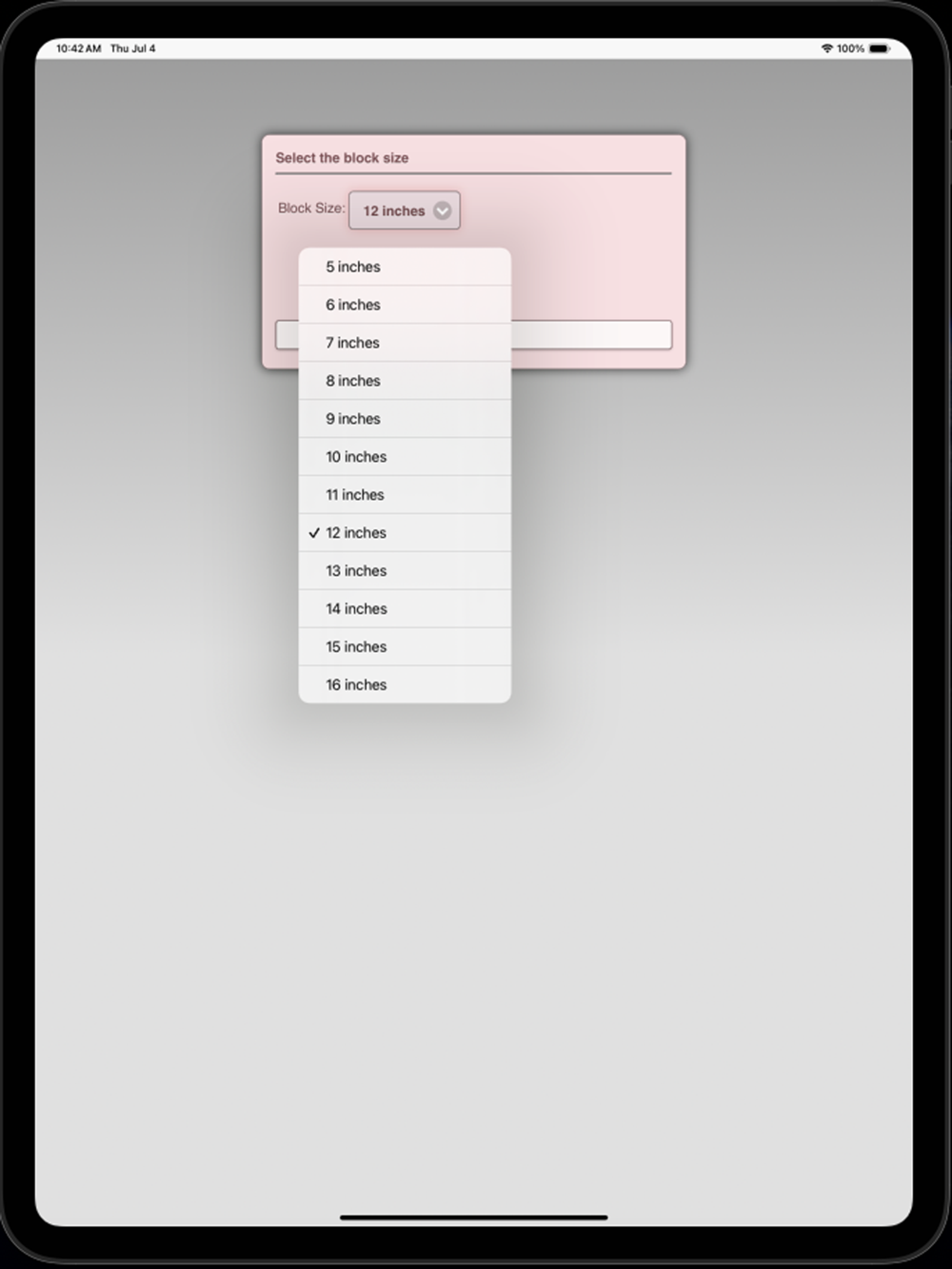 2. Enter the type of quilt (square or on point), and the quilt width and quilt height in blocks.