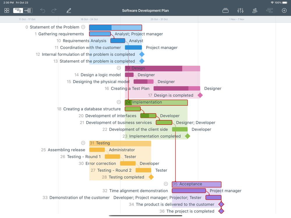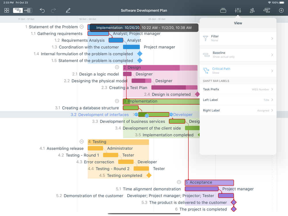 • Multiple baselines: set baseline to track development by comparing the set baseline with actual plan and progress.