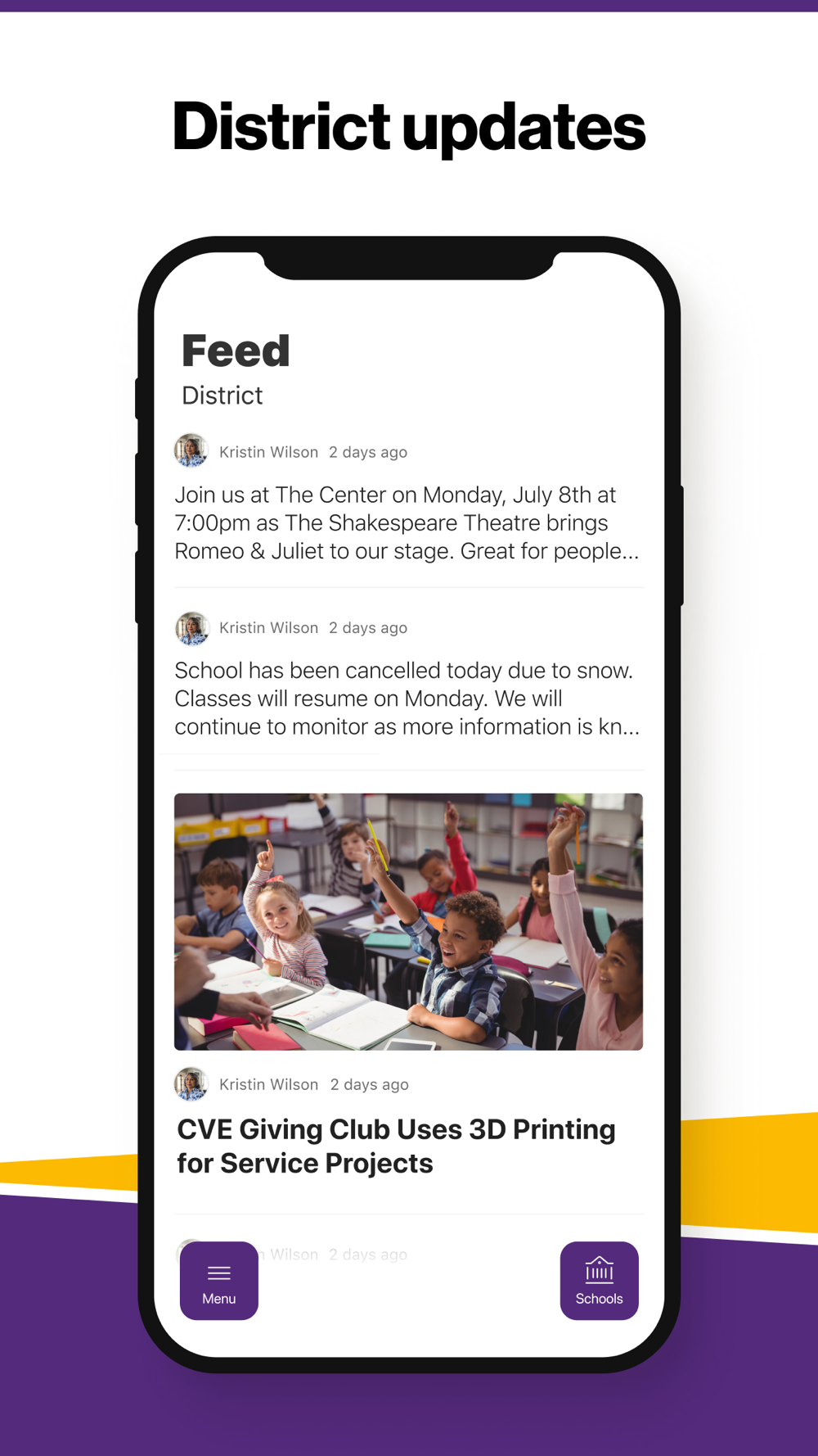 In the Live Feed is where you'll find updates from the administration about what's going on in the district right now. Whether that's celebrating a student's success, or reminding you about an upcoming deadline.