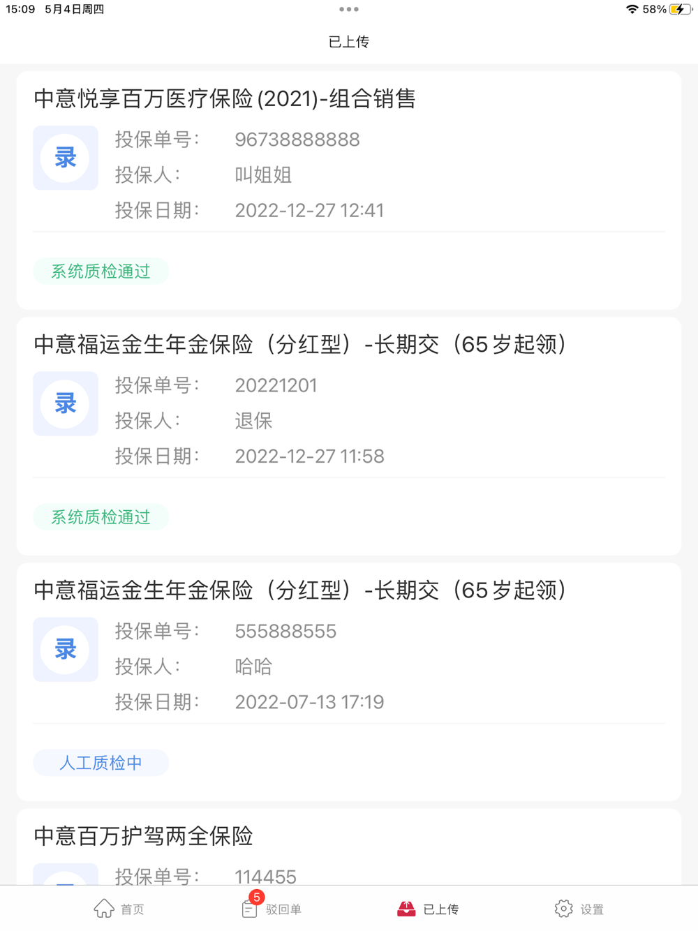 中意双录APP是一款在保险投保过程中使用录音录像方式记录保险产品销售过程的APP,其目的在于记录投保关键环节和销售行为等重要内容,并以此满足保险投保过程的可回溯性。