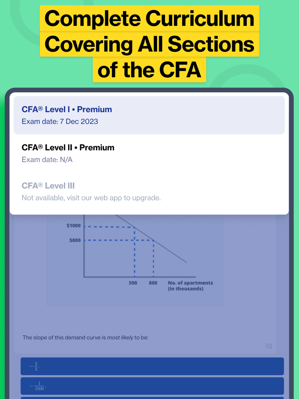 Don’t have a Bloomberg CFA Prep subscription? Sign up on the app today! Each of our plans offers personalized lessons, practice tests, live tutoring, and access to experts to answer all of your questions. Best of all, you get a two-week trial to explore the course before purchasing.