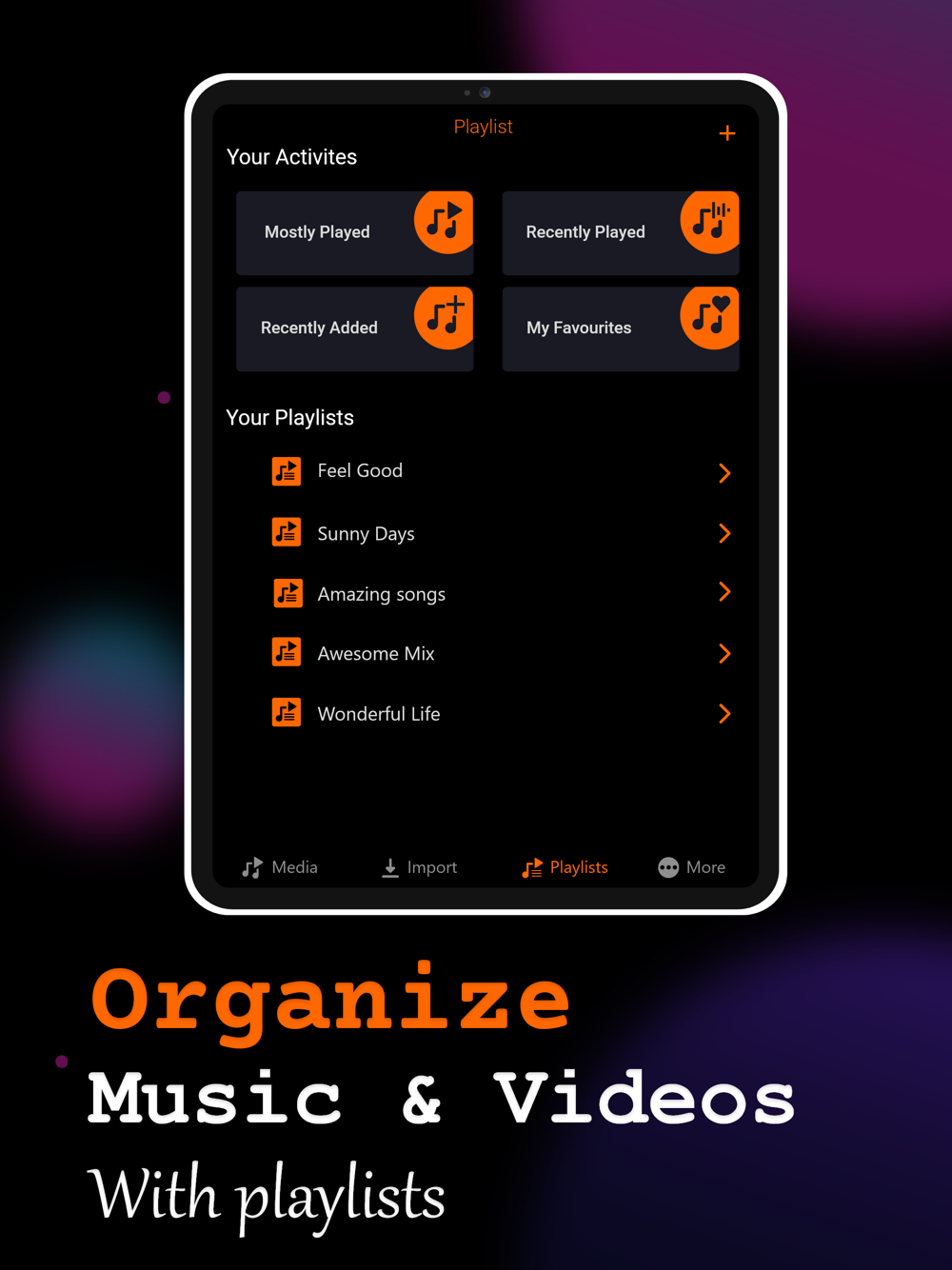 # Playlists: Create custom playlists for music and videos to match any mood or occasion.