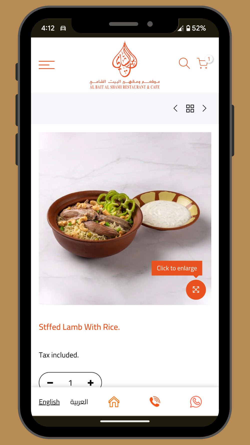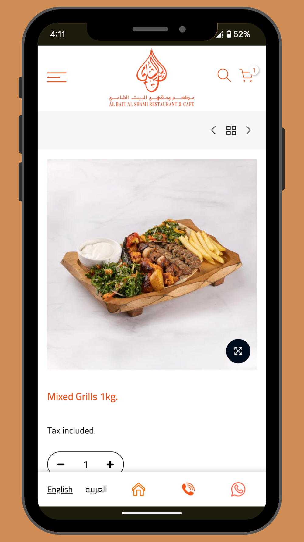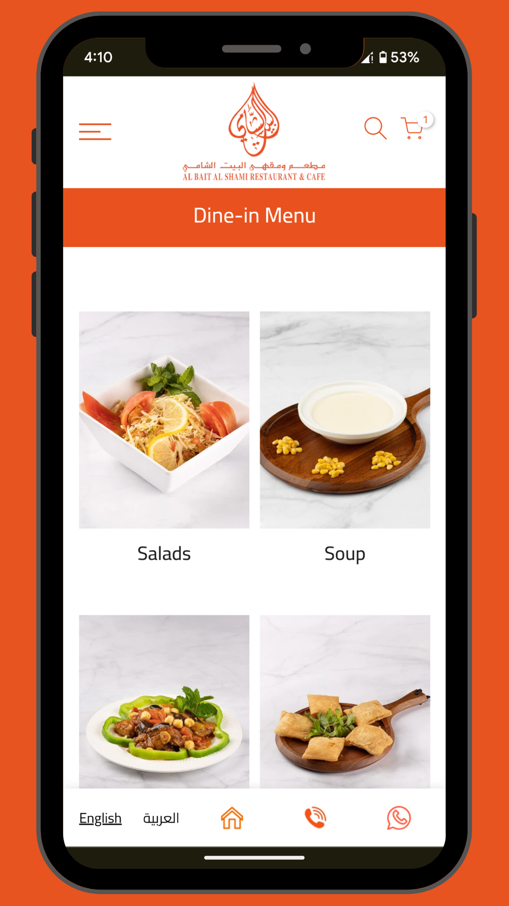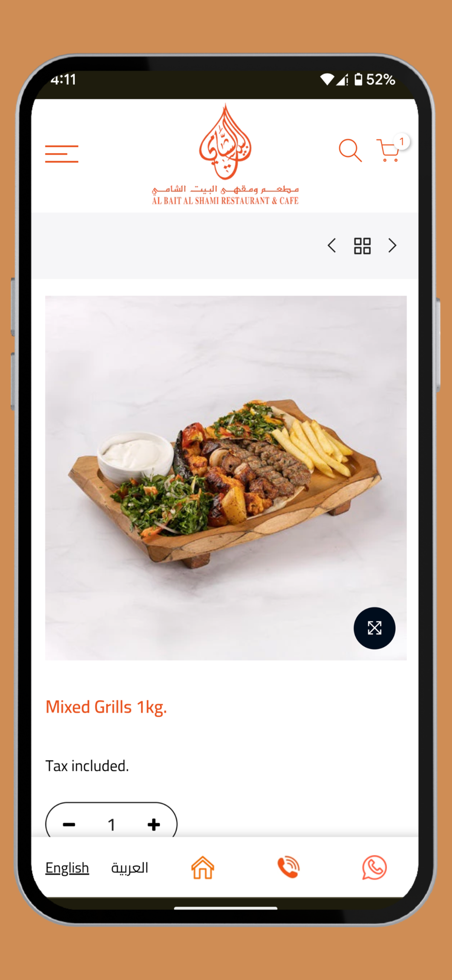 Al Shami Home Café & Restaurant offers a menu of food, beverages and Shisha with a distinctive image. There are 4 ways to purchase these products: