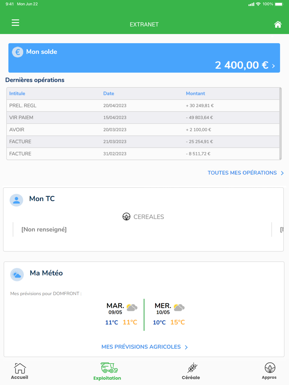 Grâce à l'application mobile STOPHYTRA, vous pourrez vous connecter à votre espace pour y retrouver toutes vos informations de compte et restez en contact avec votre n&goce agricole. Vous y retrouvez les dernières actualités de votre négoce agricole Stophytra. Vous pourrez aussi consulter l'état de vos comptes, l'historique de vos contrats et commandes. Vous pourrez aussi voir vos livraisons et votre reste en dépôt ou encore analyser la météo agricole. Retrouvez également les FDS de vos produits commandés ainsi que vos cotations.