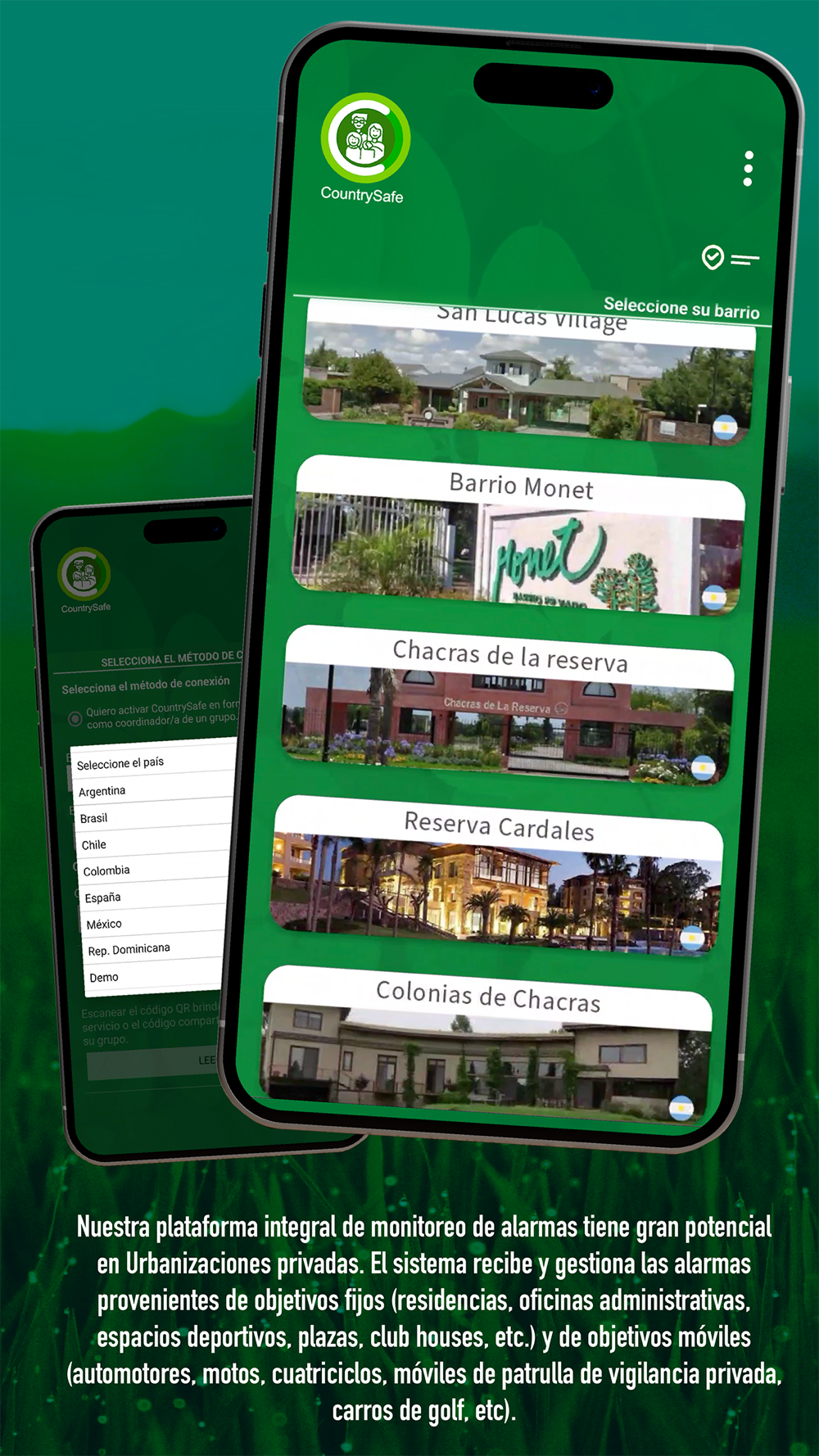 CountrySafe es la plataforma ideal para brindarle seguridad integrada y monitoreada, a las urbanizaciones privadas o condominios y sus habitantes (countries, ciudadelas, barrios privados, clubes de campo, urbanizaciones, etc)