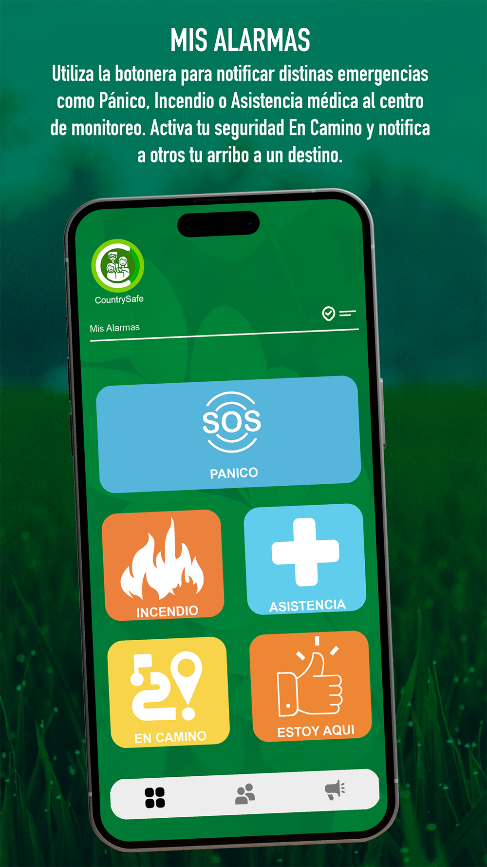 • Envío de alertas: Pánico, Incendio y Médico (dentro y fuera del barrio) para que sean atendidas por el centro de monitoreo donde tienes reportando tu App con la posibilidad de notificar automáticamente a tu grupo familiar.