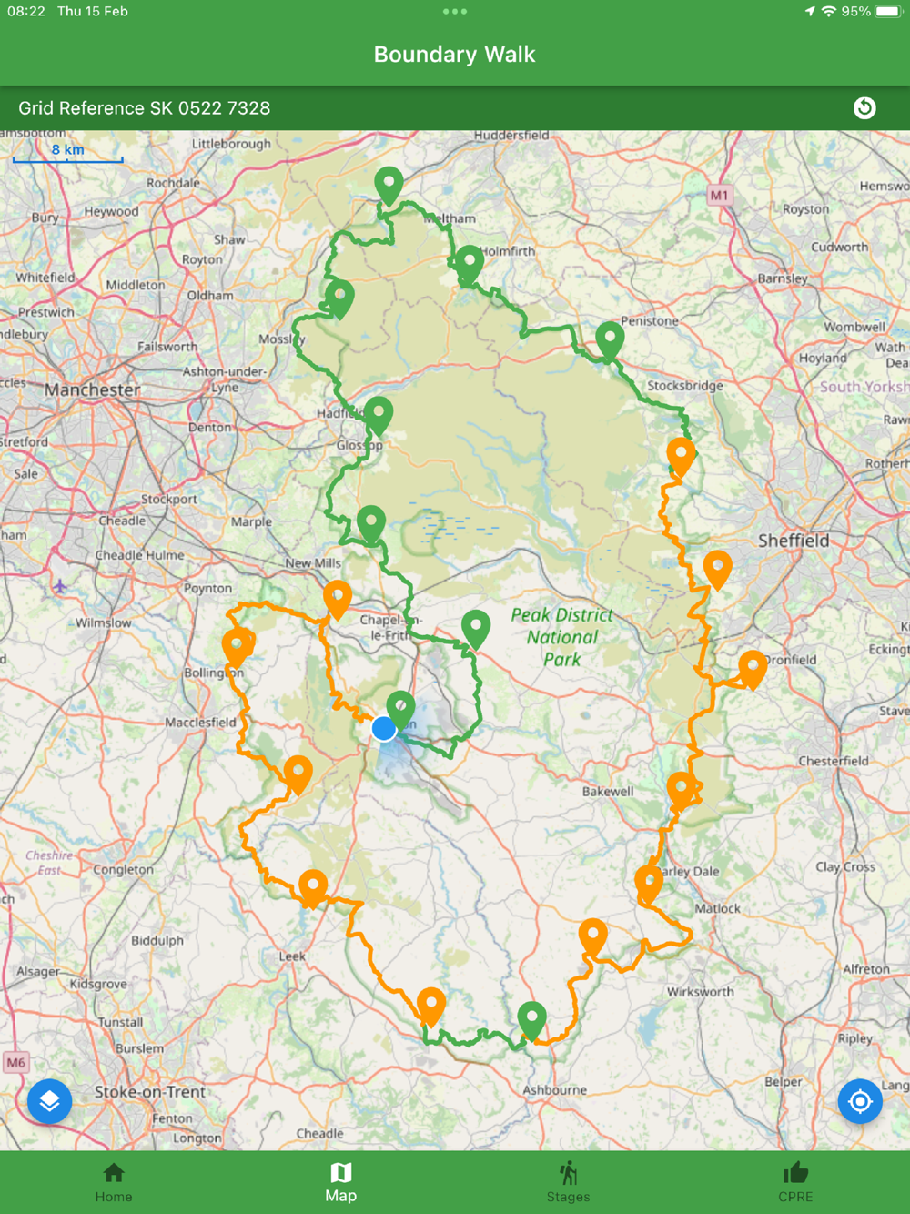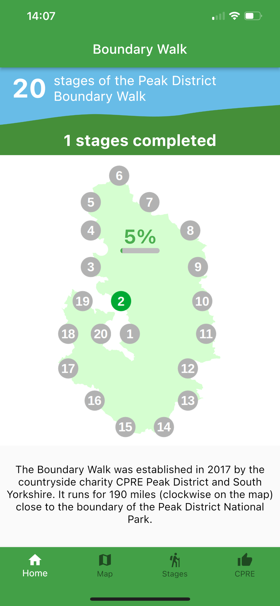 The Peak District Boundary Walk is a circular 190 miles (310 km) walking trail, starting and finishing at Buxton and broadly following the boundary of the Peak District, Britain's first national park. The route was developed by the countryside charity CPRE and was launched in 2017.