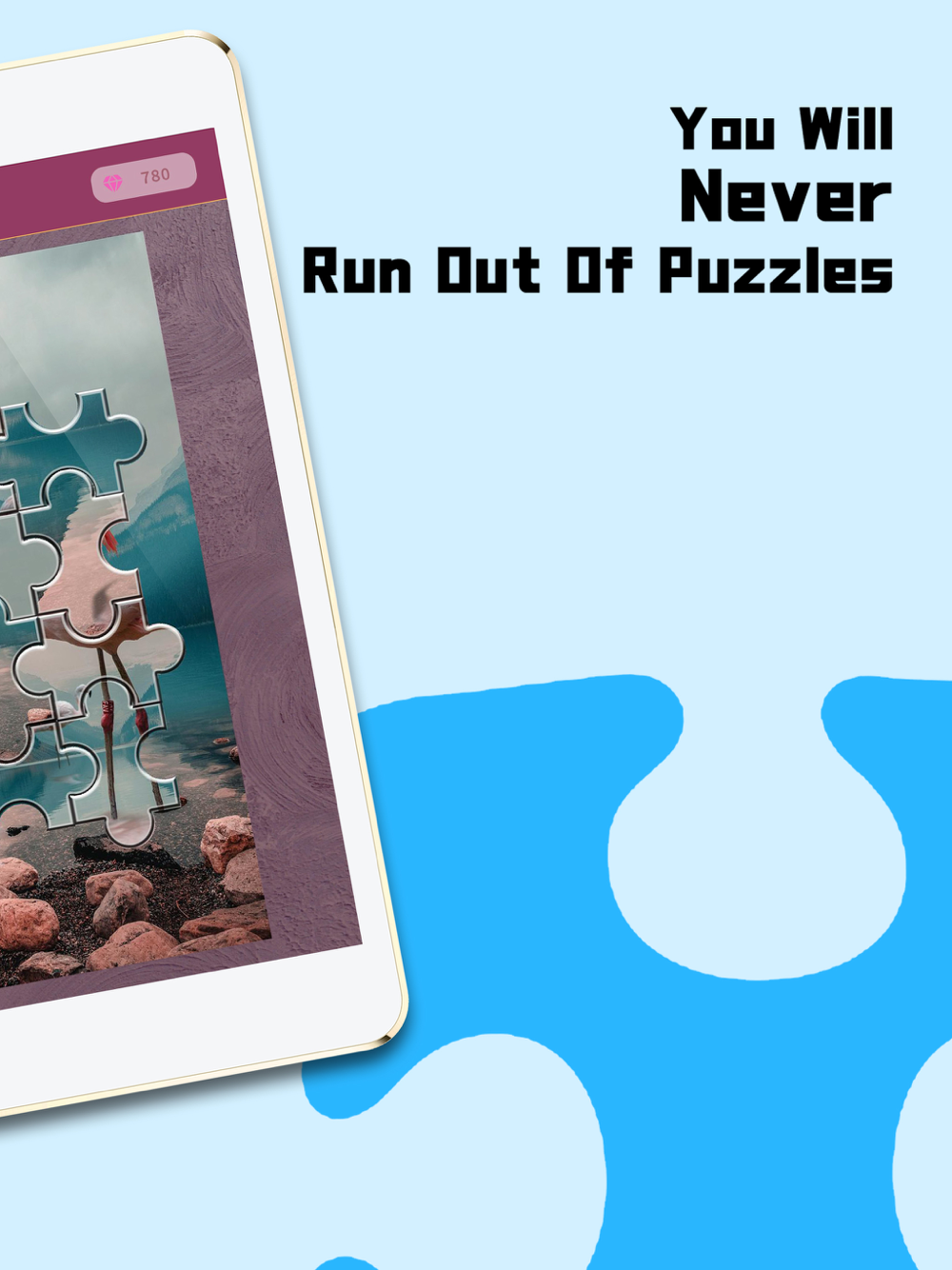 Over 5,000 HD pictures and 300 massive themed puzzle packs (colors, art, food, animals, tourism destinations, landmarks, nature, etc.) to complete