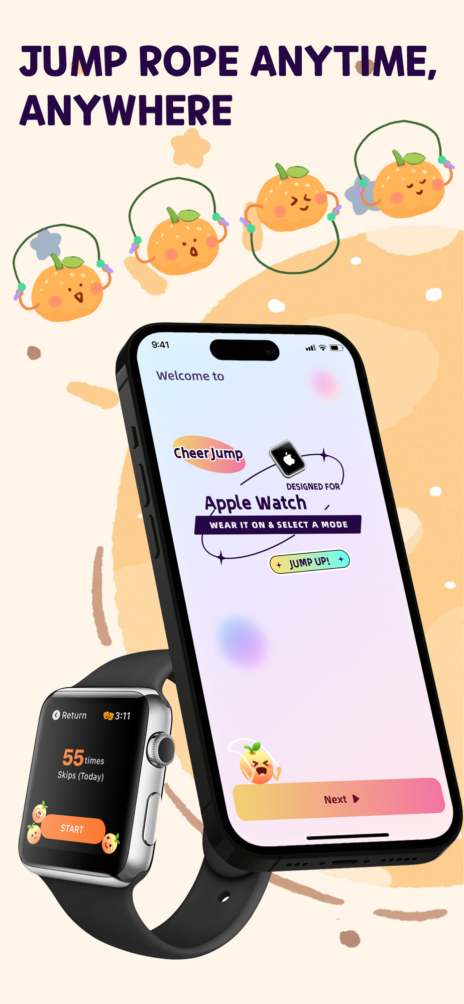 Let CheerJump move forward with you, adding points to your health.
