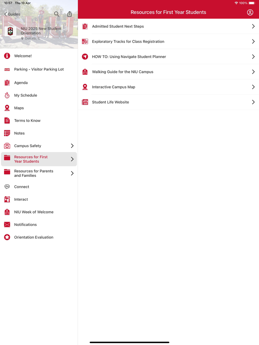 The NIU Guidebook app helps first-year students and families navigate their orientation program and Week of Welcome (WOW). You'll find the latest schedule of events, presentations and more!