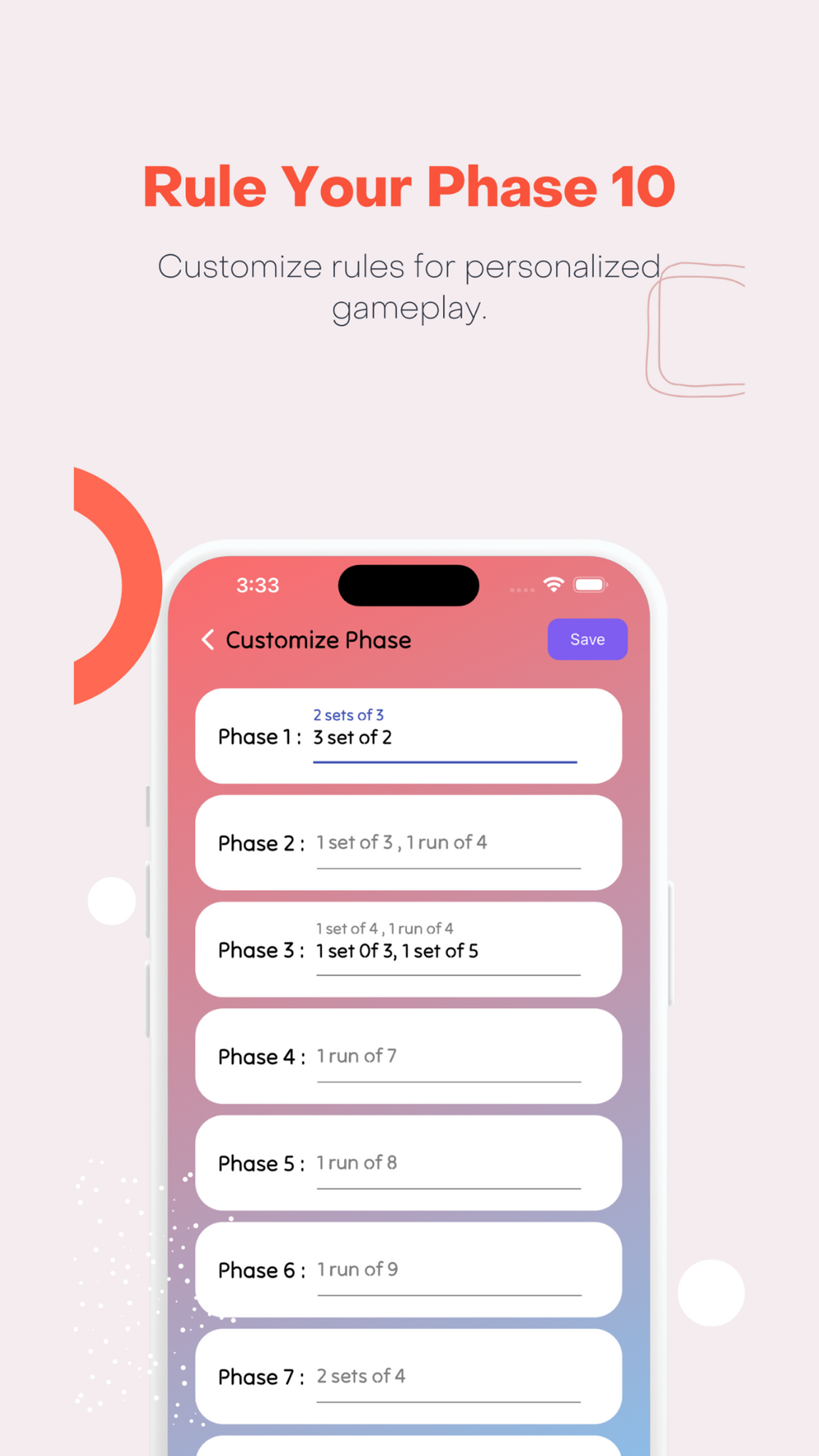 Phase 10 Scoreboard is a simple and powerful app that makes it easy to track scores while playing Phase 10. With a user-friendly design, you can quickly enter scores, see real-time standings, and stay organized throughout the game. Whether playing for fun or in a serious match, this app makes scorekeeping effortless.