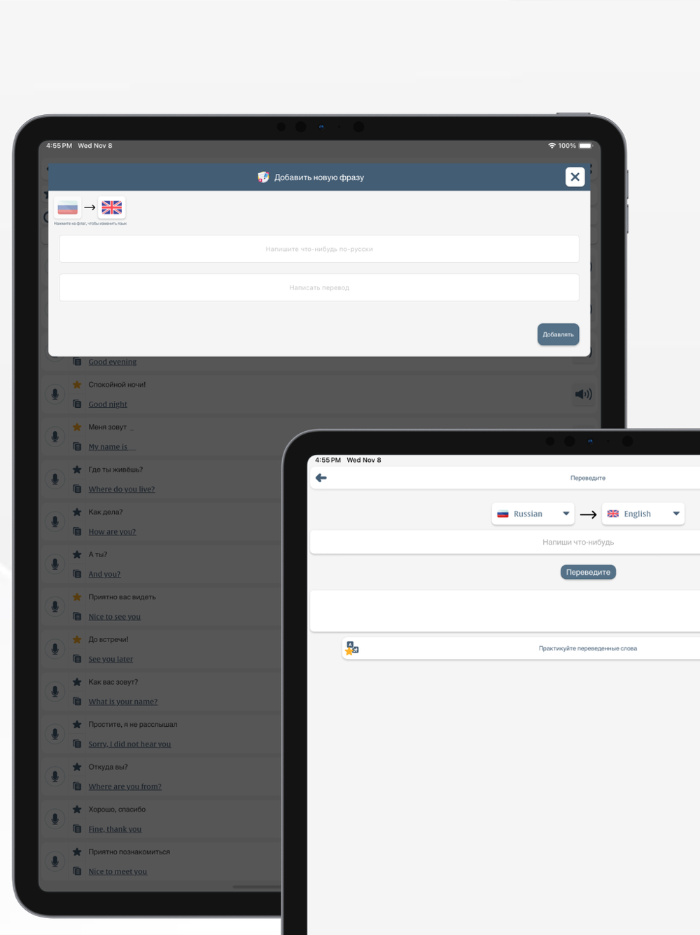 Проверьте свои знания с помощью различных типов тестов, предлагаемых приложением, таких как: сопоставление слов с одинаковым значением, поиск правильного ответа на картинке, перевод слова или предложения, прослушивание предложения, а затем его написание, произнесение предложения. появляется и многое другое.