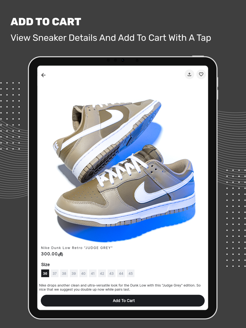 Seamless navigation: Our app provides a smooth and seamless browsing experience, making it easy to find and purchase your favorite sneakers.