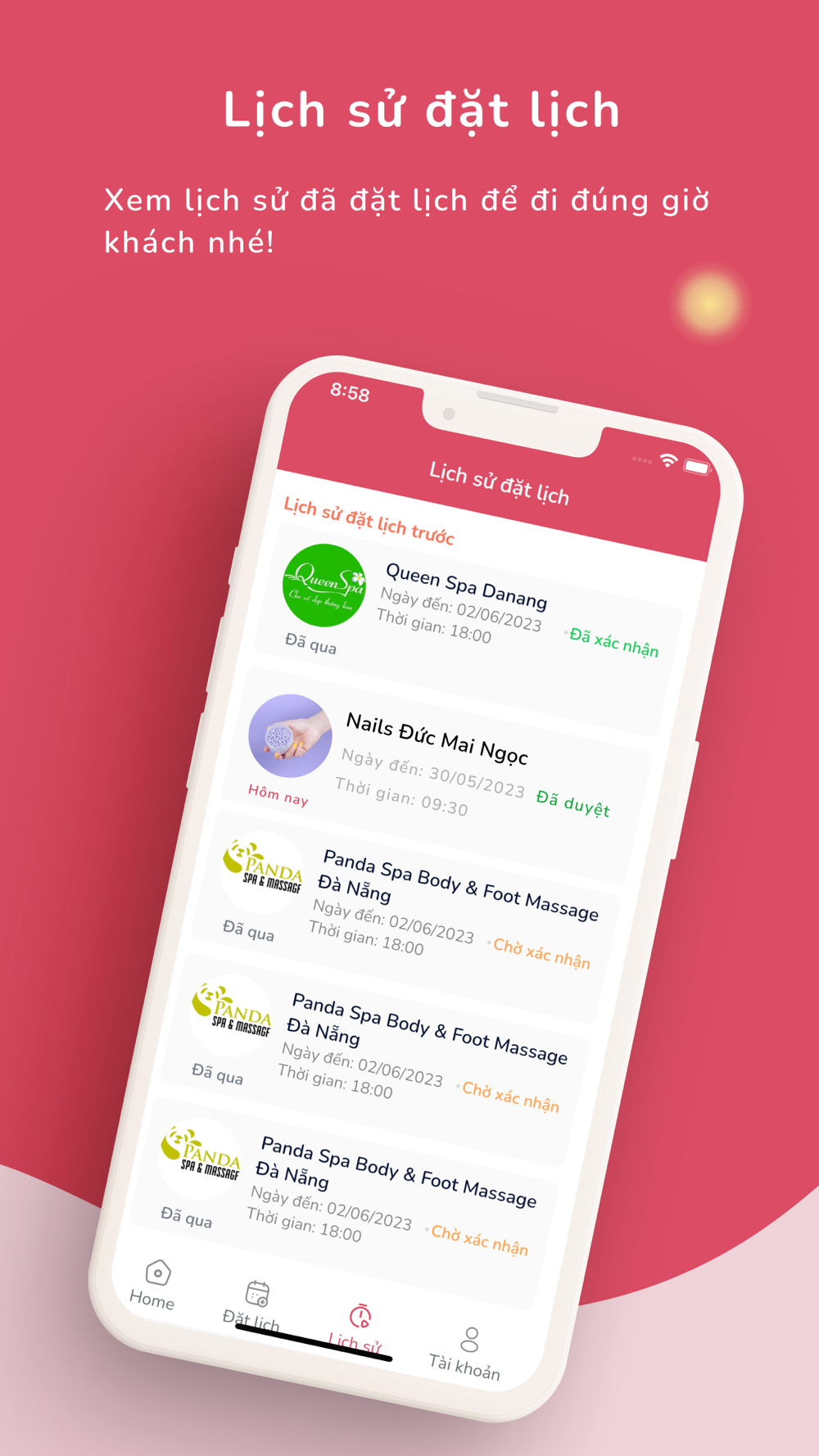 - Đặt và được xác nhận lịch hẹn nhanh chóng, tiện lợi.