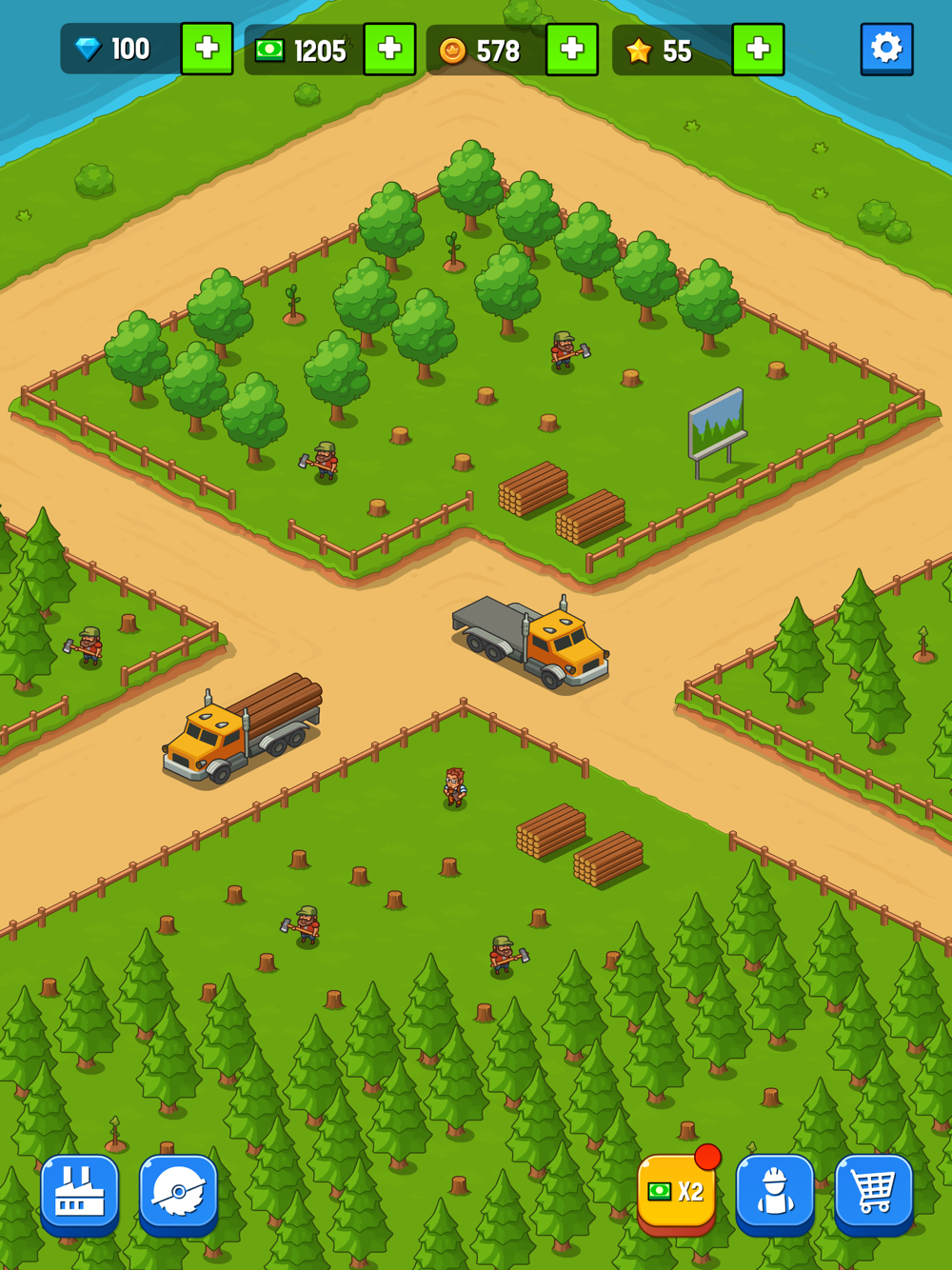 Start your journey towards lumber empire today with this captivating idle tycoon game!