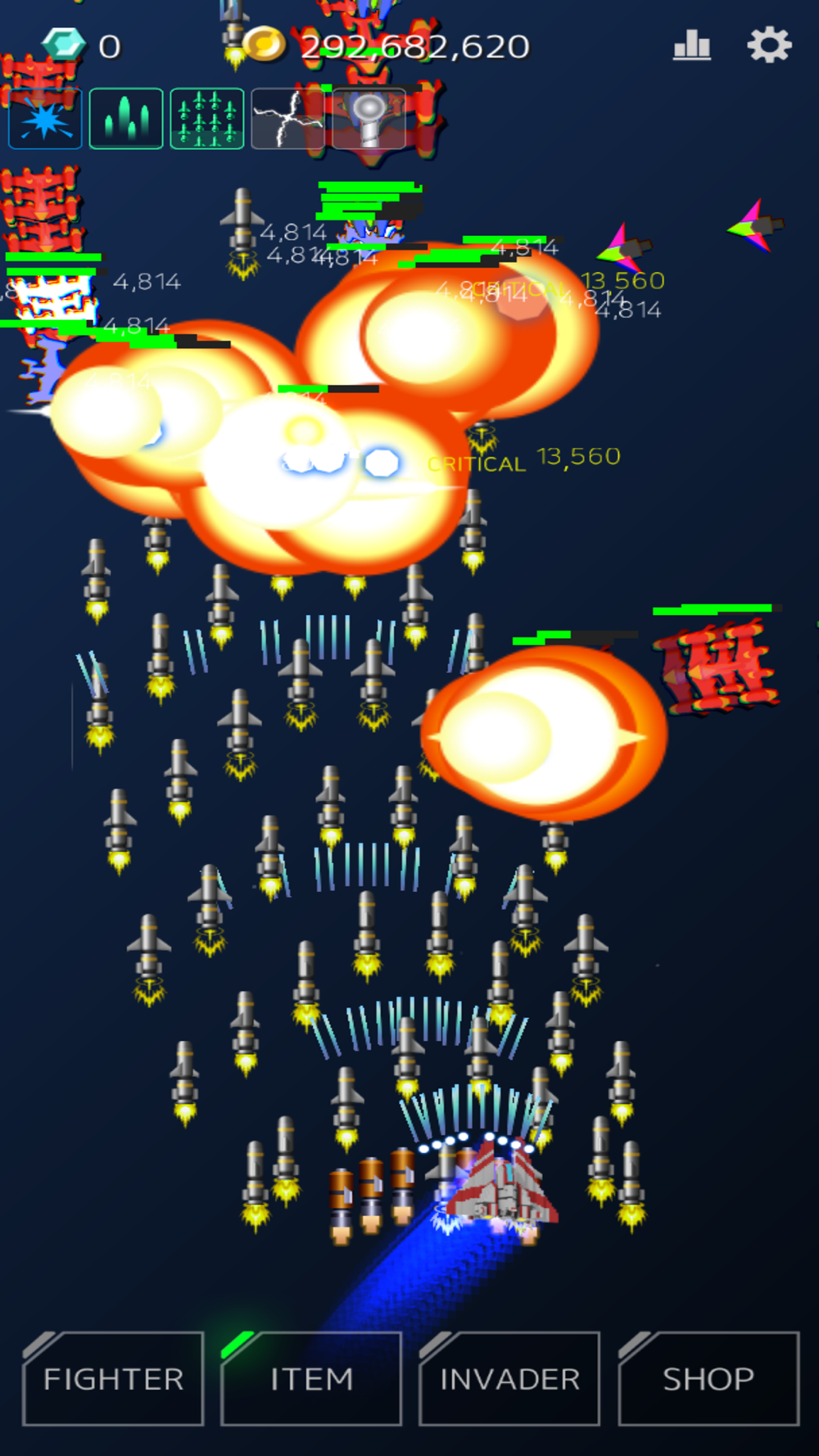 Challenge the invaders to earn rewards and make your fighter even stronger!