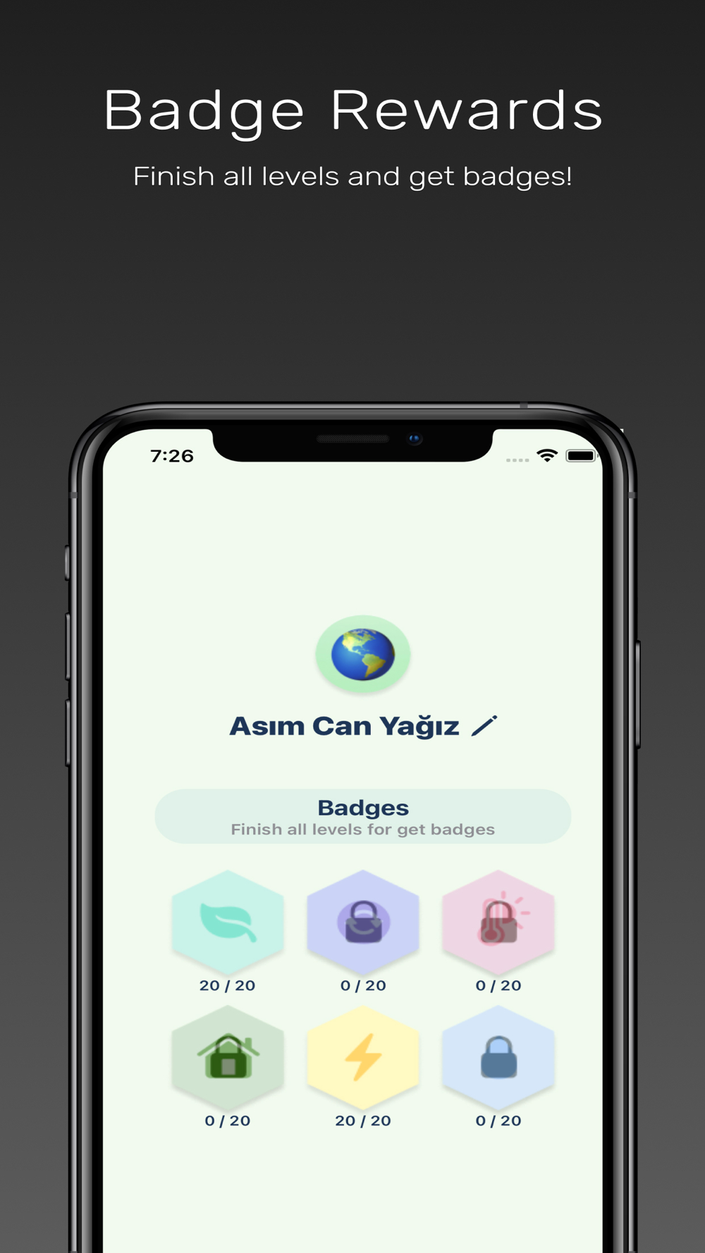 Explore six essential categories: Energy, Recycling, Water Conservation, Climate Change, Biodiversity, and Sustainable Living. Dive into each topic with interactive quizzes on the Home screen, testing your knowledge and rewarding you with unique badges for your Profile.