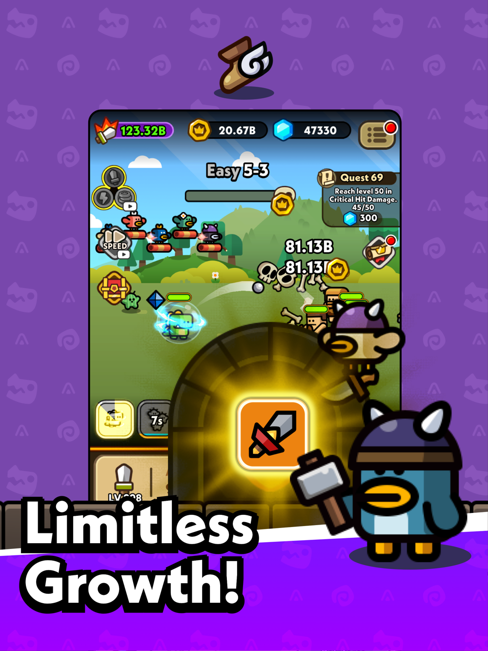 With strong epic Dino friends and powerful skills, hunt the strong Boss of the enemies and treasure of them. You will get plentiful rewards and gold!