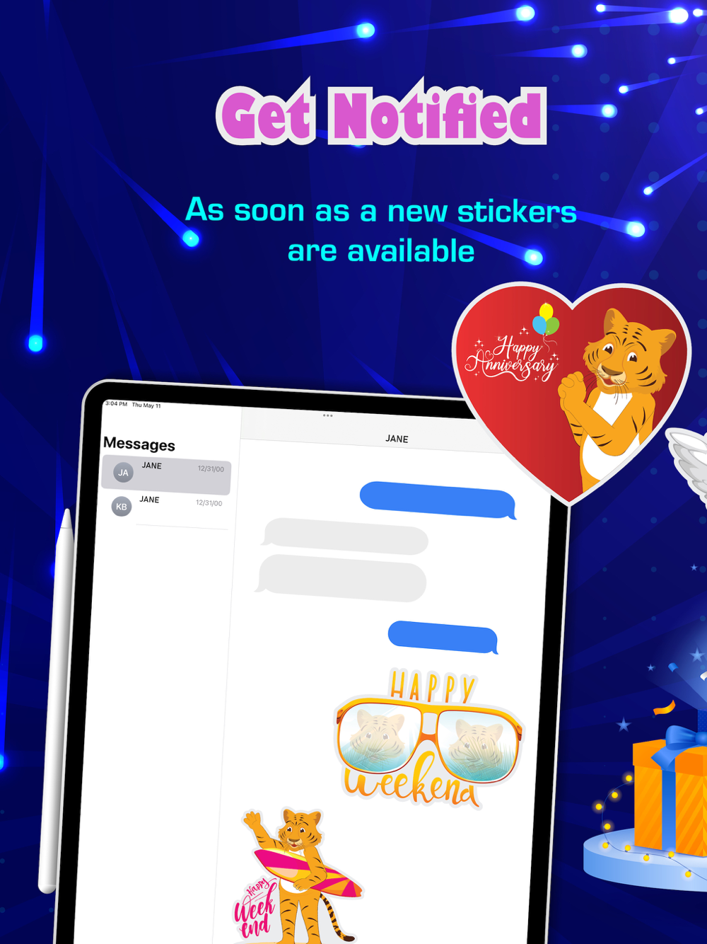 Beautiful and funny stickers with our Tygrys mascot. Tiger is having fun celebrating with you.