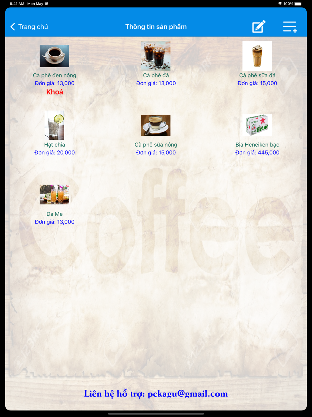 Ứng dụng hỗ trợ các quán Cà phê, quán ăn các chức năng cơ bản một cách hiệu quả, nhanh chóng. Hoàn toàn miễn phí :