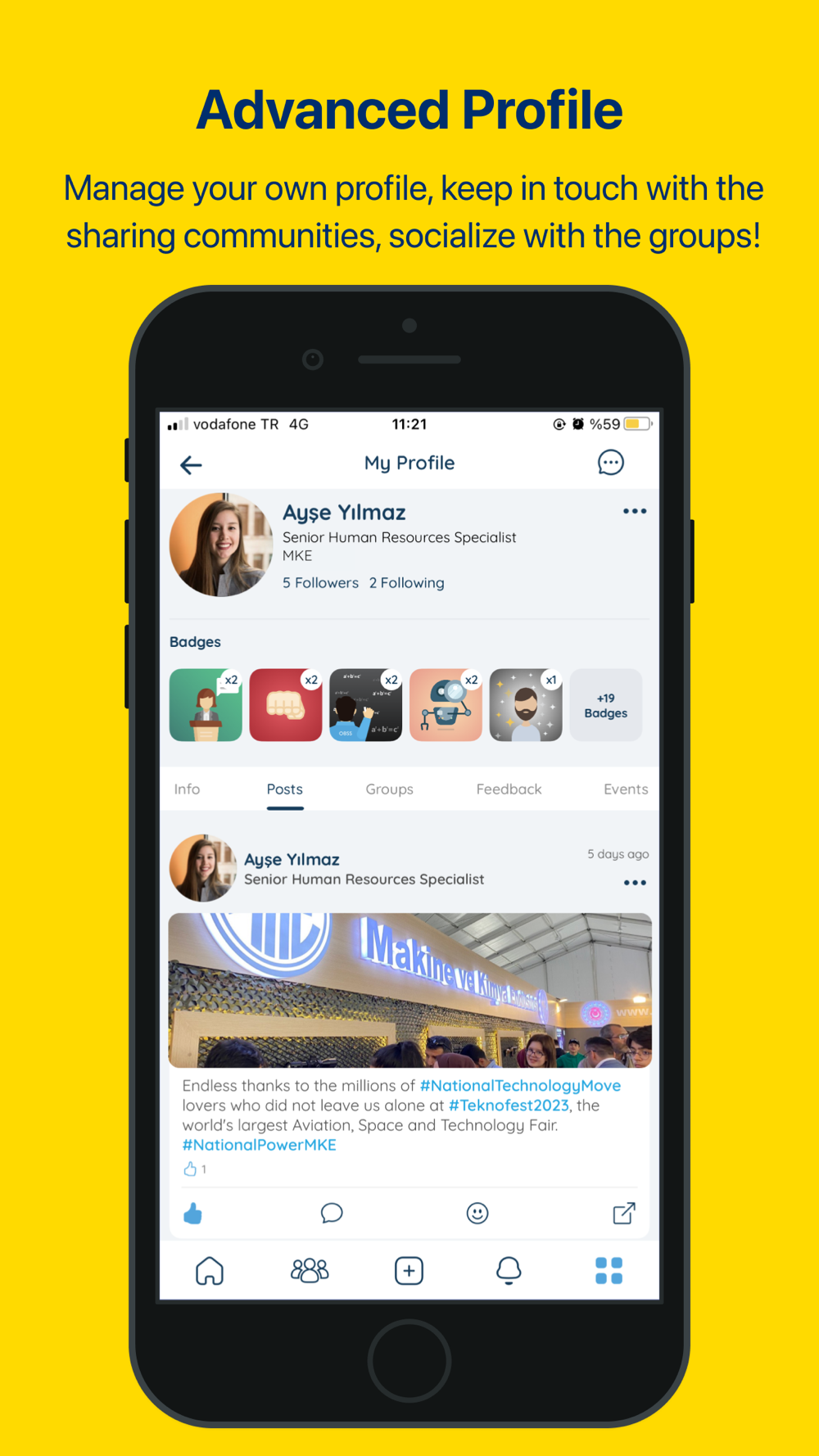 • You can increase the communication with the MKE's members and keep this communication alive with the announcements, notifications, events, surveys, group creation options and feedbacks.