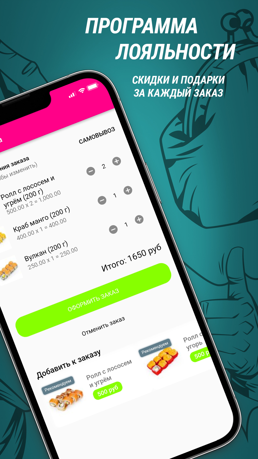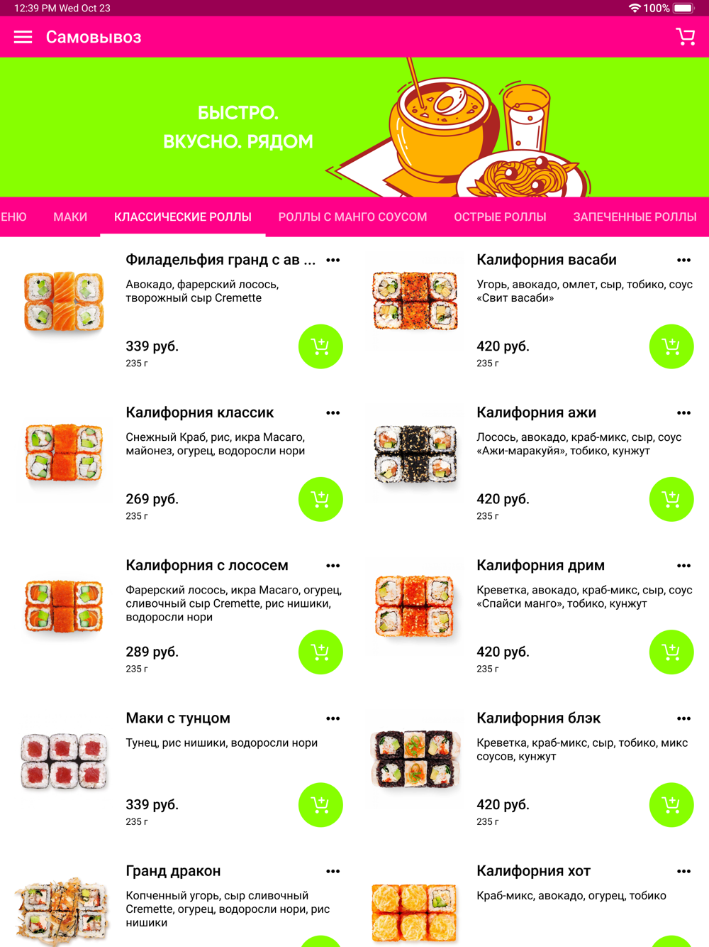 Скачайте наше мобильное приложение и заказывайте суши и роллы с доставкой на дом, в офис или на вечеринку или забирайте блюда навынос.