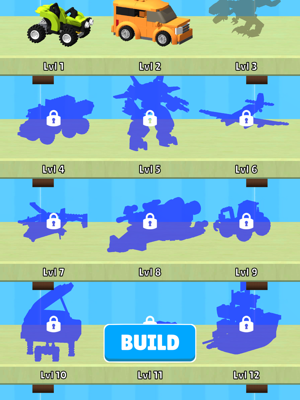 Your collection will feature a variety of models, including toy planes, trucks, mechs, and famous buildings like the Eiffel Tower and Dutch windmills. As you progress through the levels, the objects you create will become increasingly intricate and detailed.
