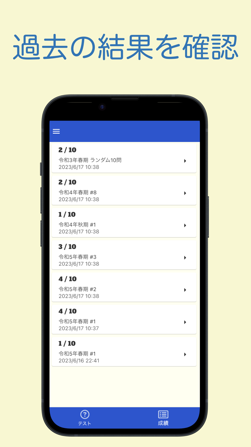 実施した問題については履歴から確認し、間違った問題を復習できます。