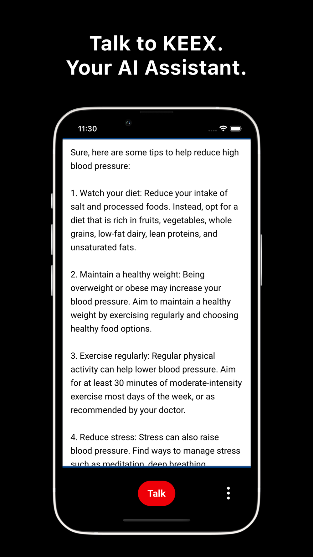 KEEX is a super-intelligent AI chatbot that you interact with using voice. With voice recognition that is at the human level, you can talk to KEEX as if it's a human being. KEEX won't cut you off when you speak, and even if you have pauses, filler words or rephrase your speech, KEEX can understand it all.