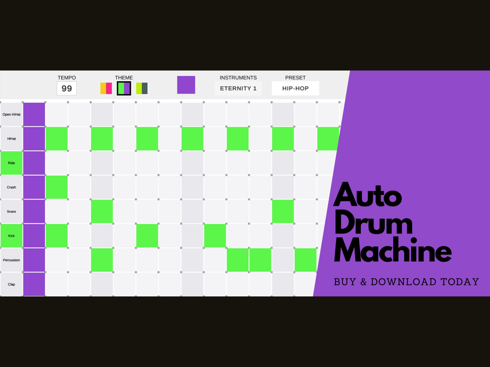 I created the drum machine for myself in the first place. The goal of auto drum machine is too me beginner-friendly. It has great sounds and audio. It offers enough configurations for new and experienced musicians.