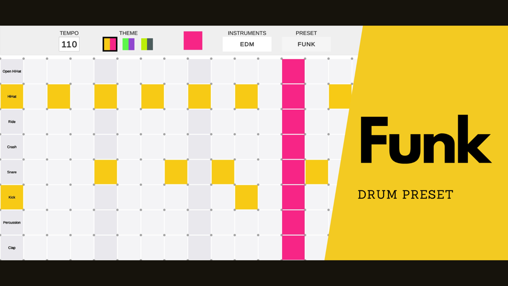 Also it saves the drum machine grid changes on every click, so your work is auto-saved for you by every click.