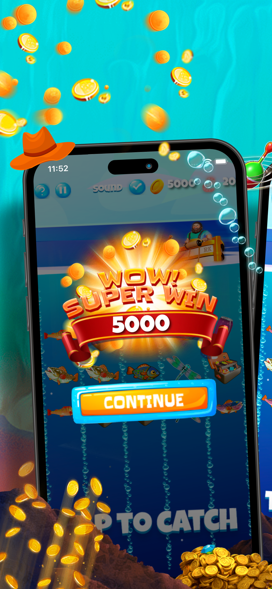 Dive into the exciting world of fishing with our addictive new game. Cast your line and reel in the big bass as you test your skills across 5 vertical lines. As a skilled angler, your goal is to catch fish by tapping the screen when the bobber aligns with a fish on the top row of tiles. Be careful though, if you miss the timing, you'll lose your bait! You start with 10 pieces of bait, but don't worry, you can always replenish your supply by purchasing more from the in-game store.