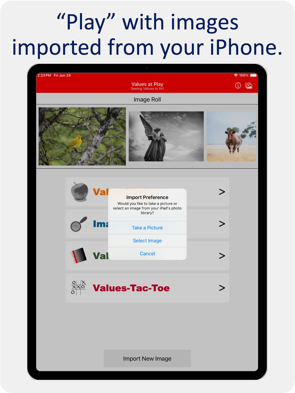 Use "Values at Play" to practice seeing values in art. Practice with one of the images included in the app or import your own image. Values at Play includes: