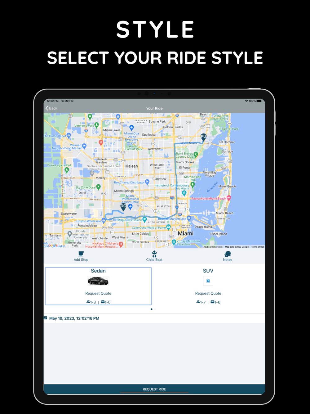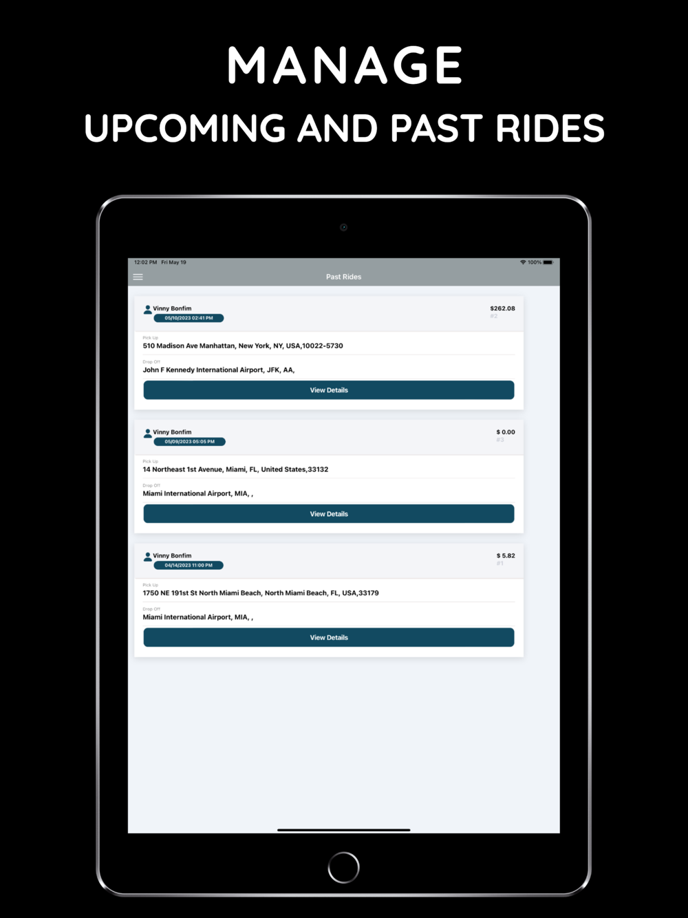 Receive text and email message updates with the driver’s contact information and arrival status.