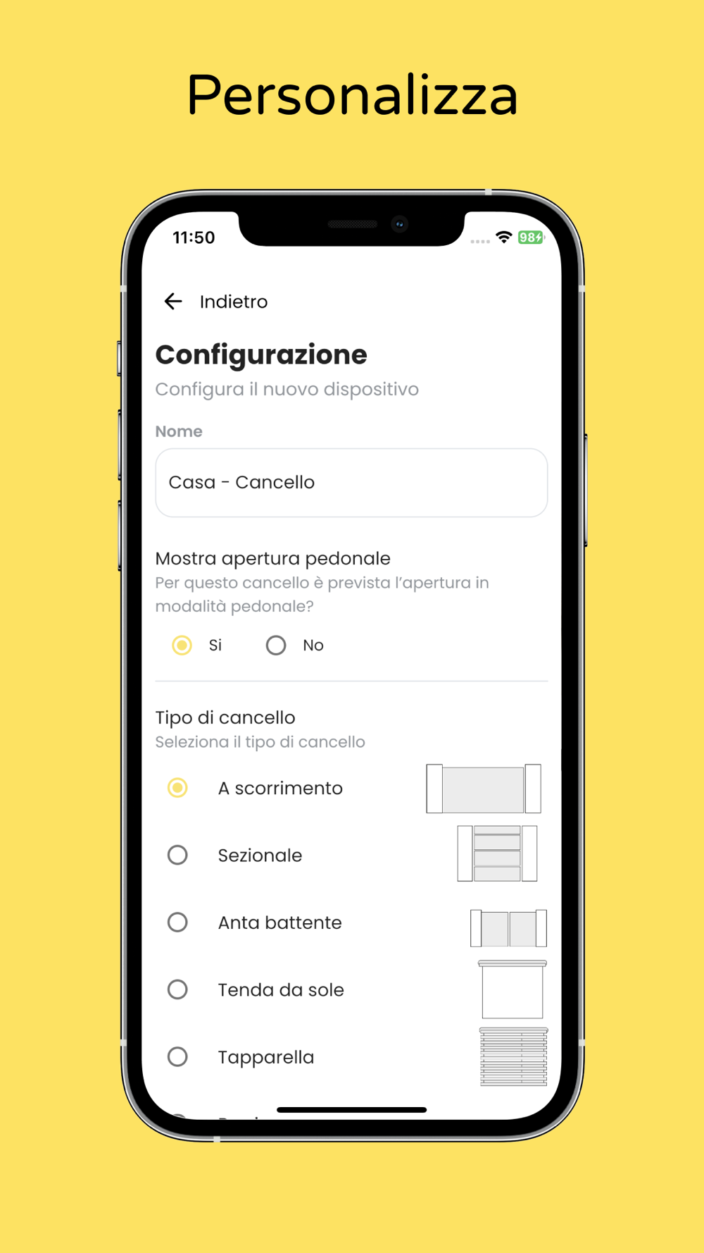 Tramite la connessione internet l’utente potrà aprire/chiudere/fermare l’automazione in tempo reale, essere a conoscenza se il cancello è aperto o chiuso.