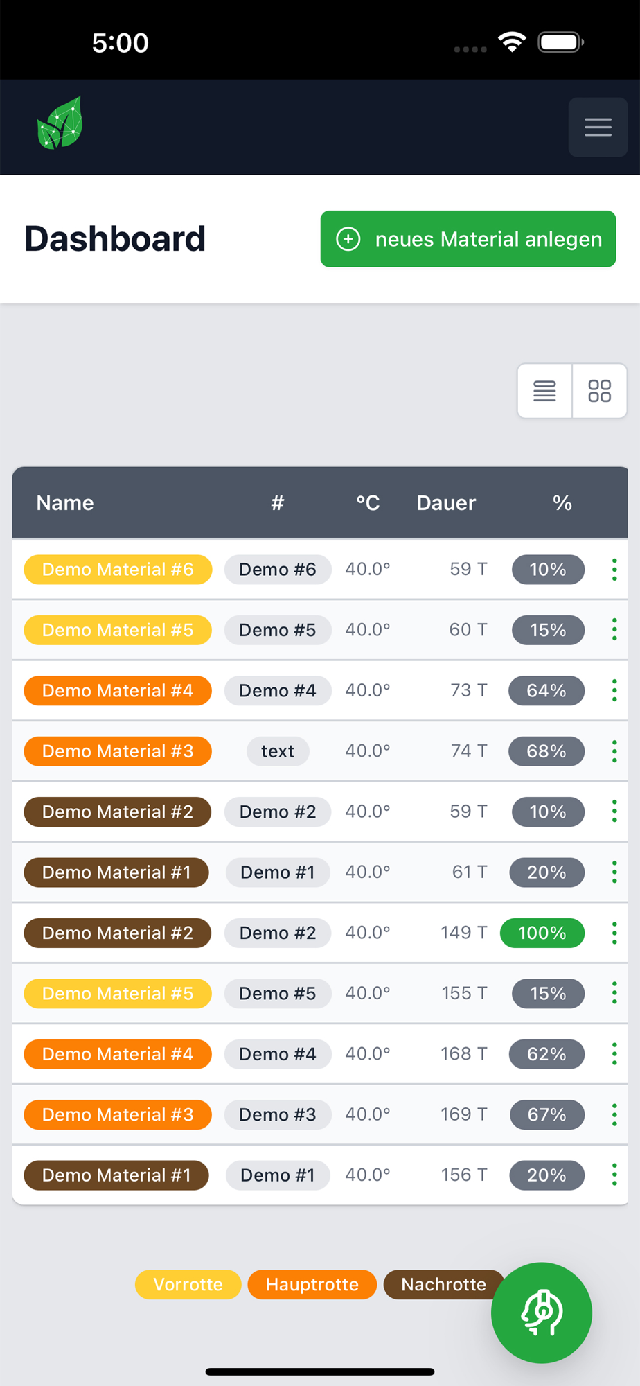 Temperaturmessung von Humus, Kompost und Schnittgut war noch nie so einfach. Mit den Sonden von compocheck24 erhalten Sie Live-Messdaten rund um die Uhr direkt auf Ihr Smartphone. Damit sparen Sie sich die aufwändige händische Messung, den Papierkram und die Personalkosten. Außerdem werden Sie automatisch vor der Verkohlung Ihres Materials gewarnt.