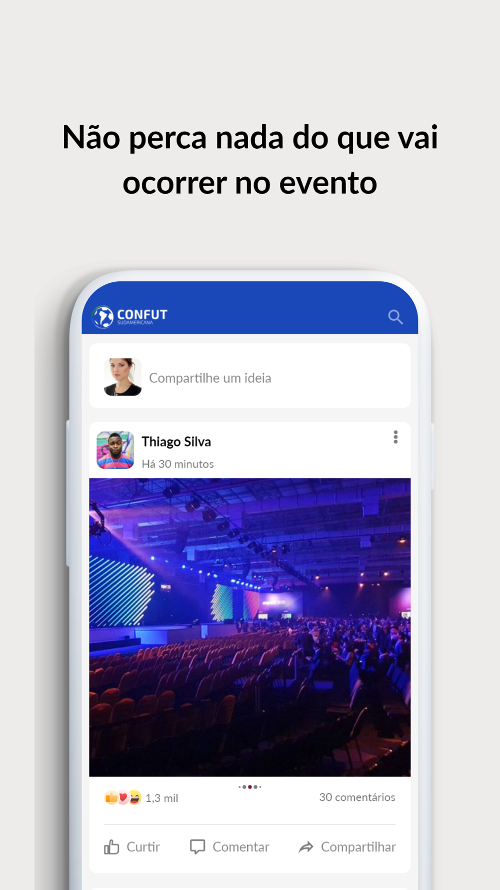 Com o aplicativo da Confut Sudamericana, você tem acesso a uma rede social exclusiva, pode fazer novos contatos, enviar perguntas aos palestrantes, trocar mensagens com outros participantes, enfim, interagir com a comunidade. Além disso, você pode consultar a programação, avaliar conteúdos, dar feedback e responder quizzes. Utilize o APP e aproveite ao máximo os recursos.