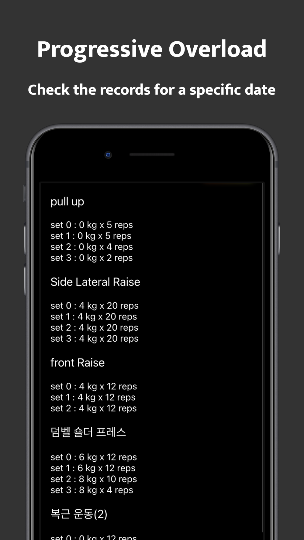 - 이날은 몇 개 했지? 알고 싶다면 날짜별 운동 기록을 확인해 보세요.