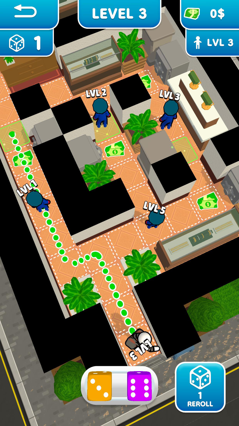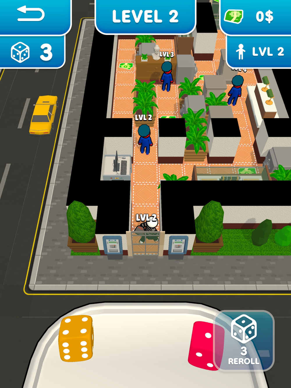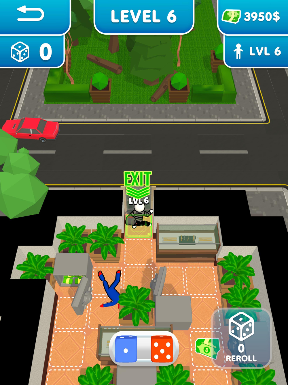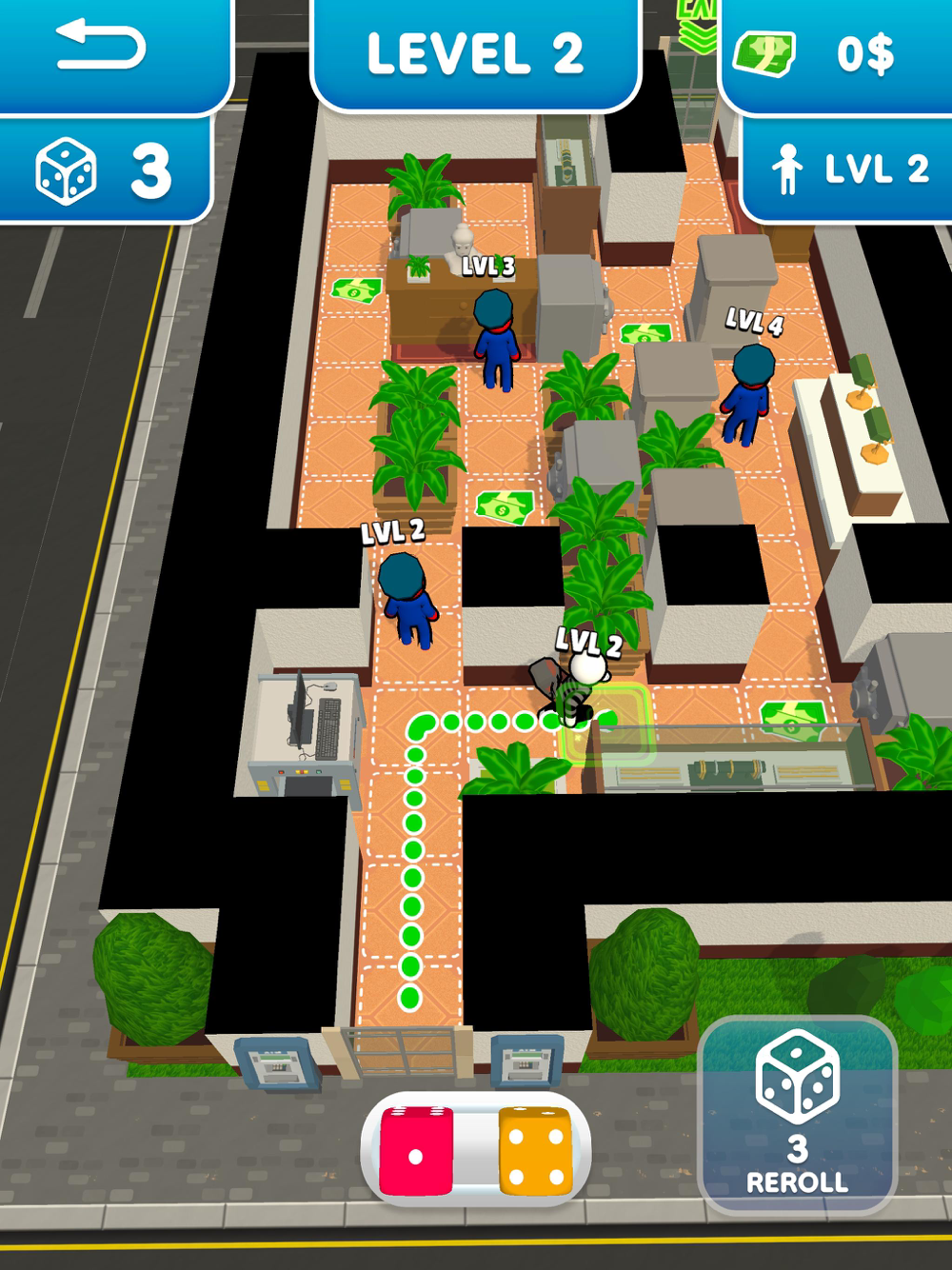 Robbery is a game of chance, so roll for your lucky move and outsmart the guards.