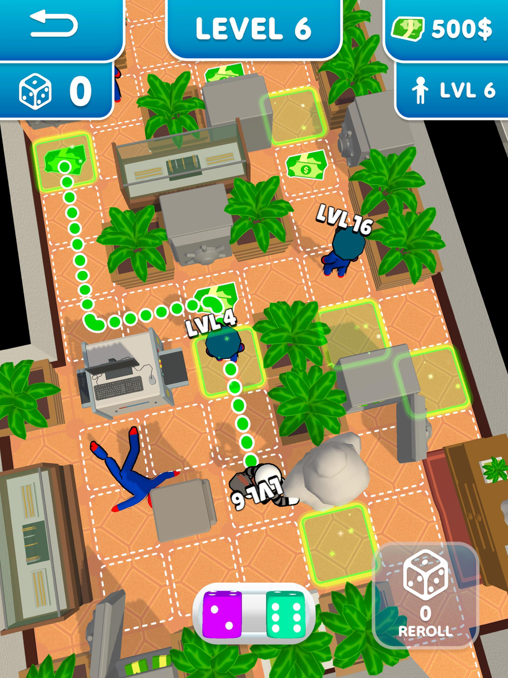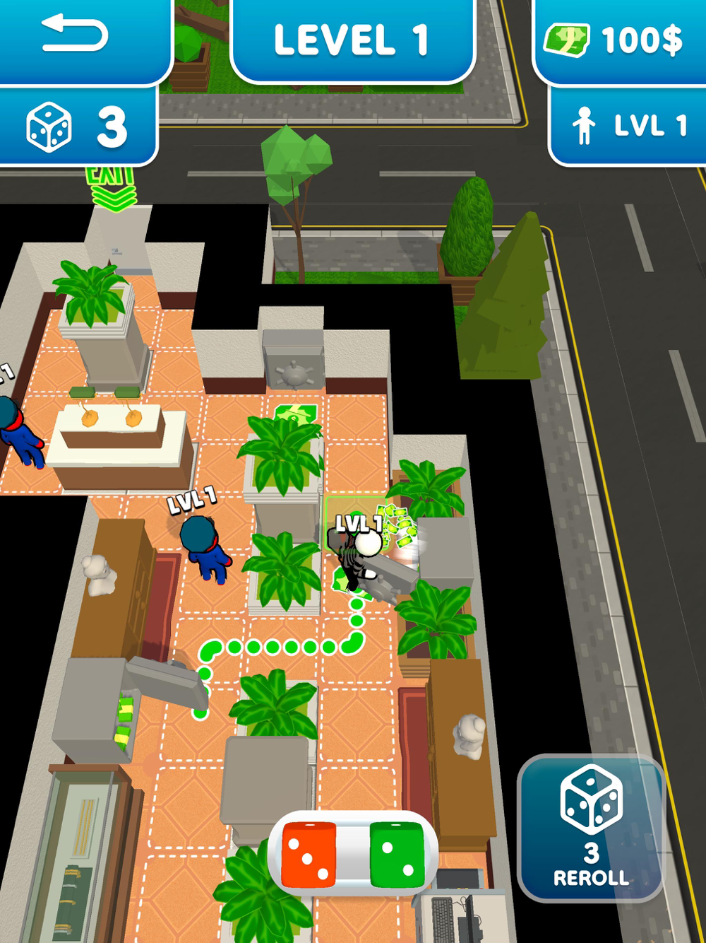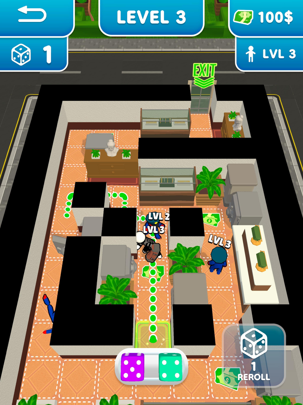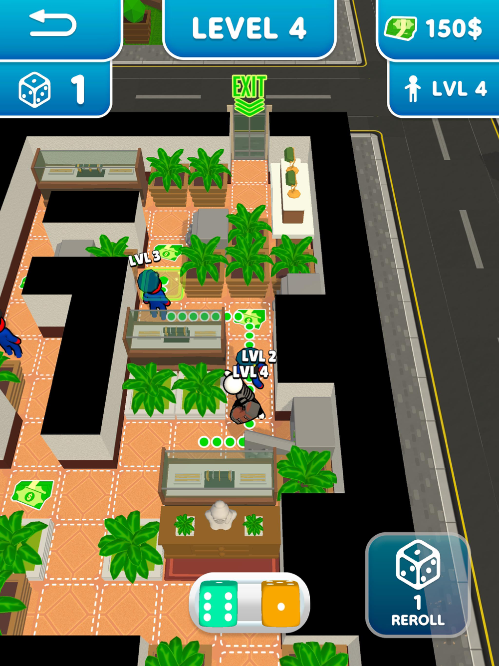 Robbery is a game of chance, so roll for your lucky move and outsmart the guards.