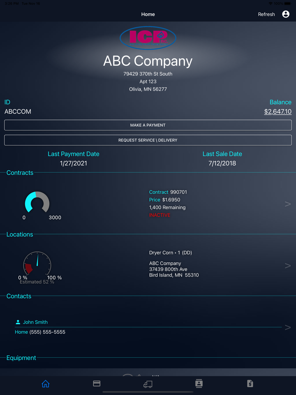 Information at your fingertips! This app gives you direct access to your account balance, location and contract information. It also gives you the ability to store and process payment and request service work and deliveries directly through the app.
