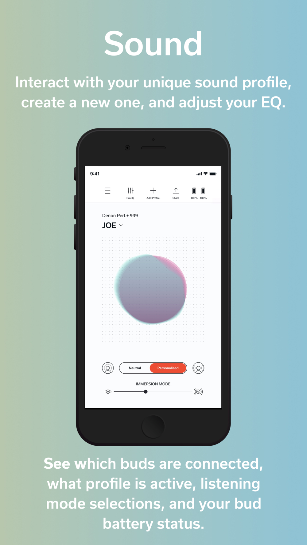 The Denon Headphones app lets you personalize your listening experience for Denon PerL Pro and Denon PerL earbuds featuring Masimo Adaptive Acoustic Technology. Create your unique hearing profile with a one-time measurement, and the earbuds sonically shape your music to match your profile. Easily switch between Noise Cancelling and Social Mode, adjust EQ and Immersion Mode. Get the ultimate personalized audio experience with the Denon Headphones app.