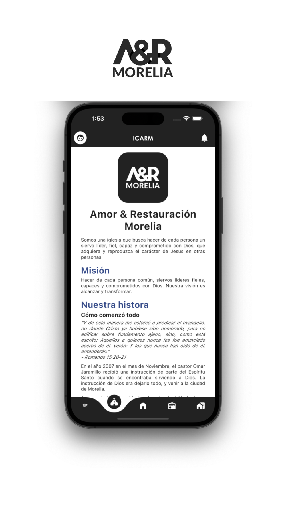 Bienvenido(a) a la aplicación oficial de nuestra iglesia Amor y Restauración Morelia, donde podrás experimentar una conexión espiritual más profunda y mantenerte al tanto de todas las actividades y eventos importantes.