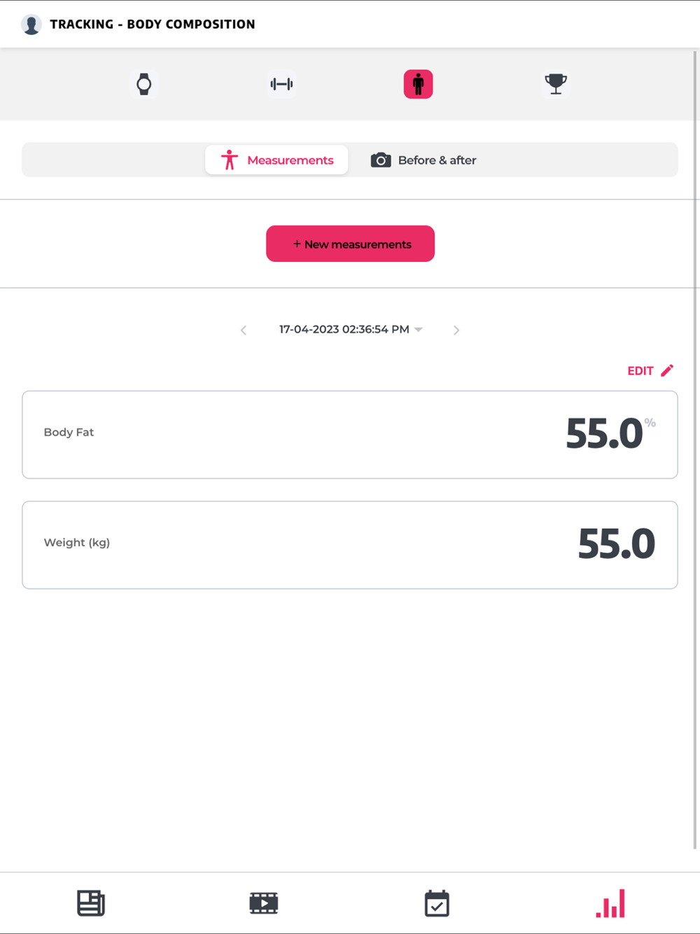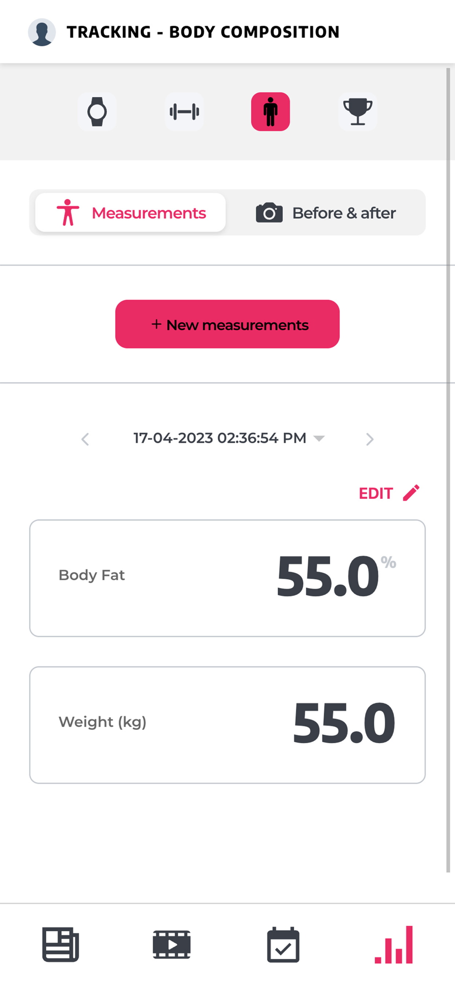 - Keep track of your body measurements and progress