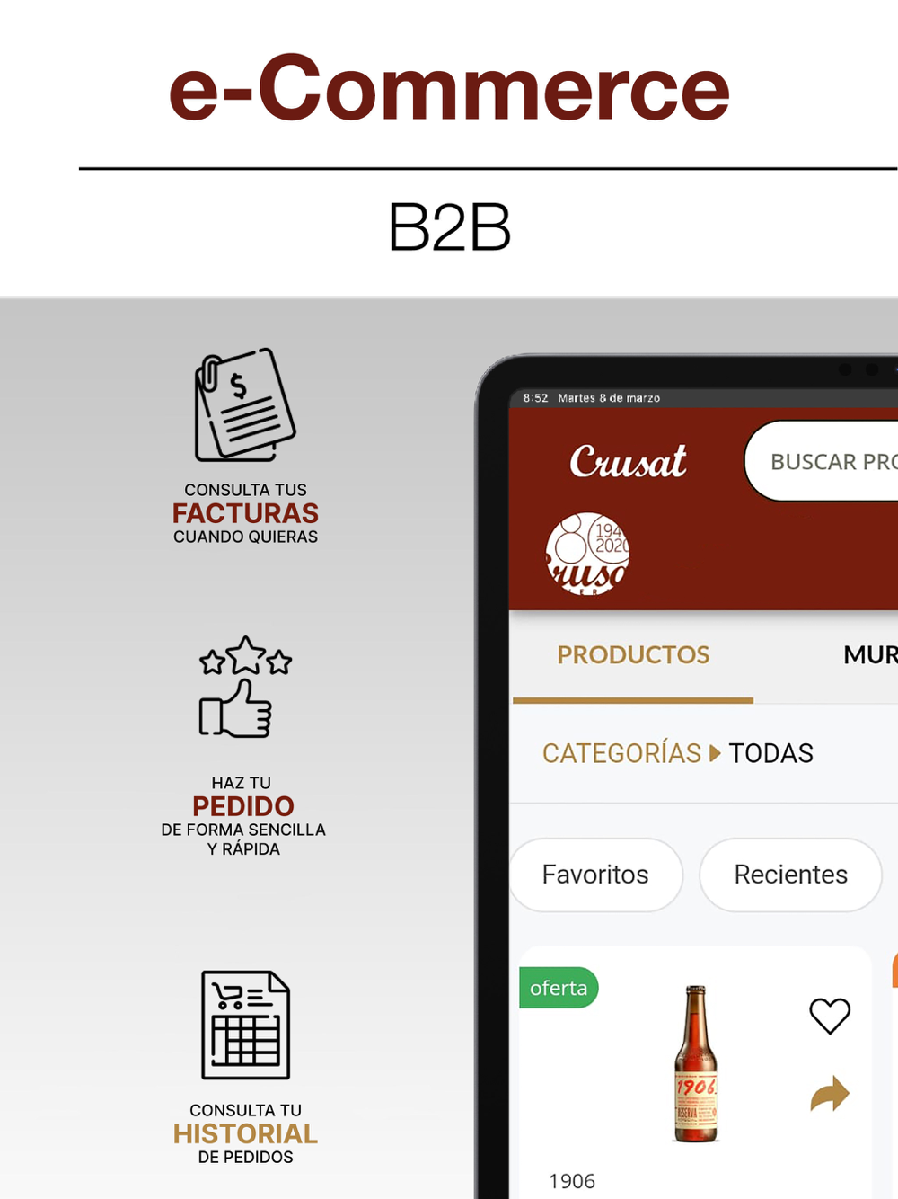 En Crusat distribuimos las marcas lideres de cerveza local e internacional, junto con la más completa gama de productos para la hostelería y la pequeña alimentación. Ahora puedes realizar tus pedidos online, consultar nuestro catálogo, ver tus pedidos, consultar y descargar tus facturas, además de estar permanentemente conectado e informado de nuestras ofertas y novedades, todo a través de esta nueva App.