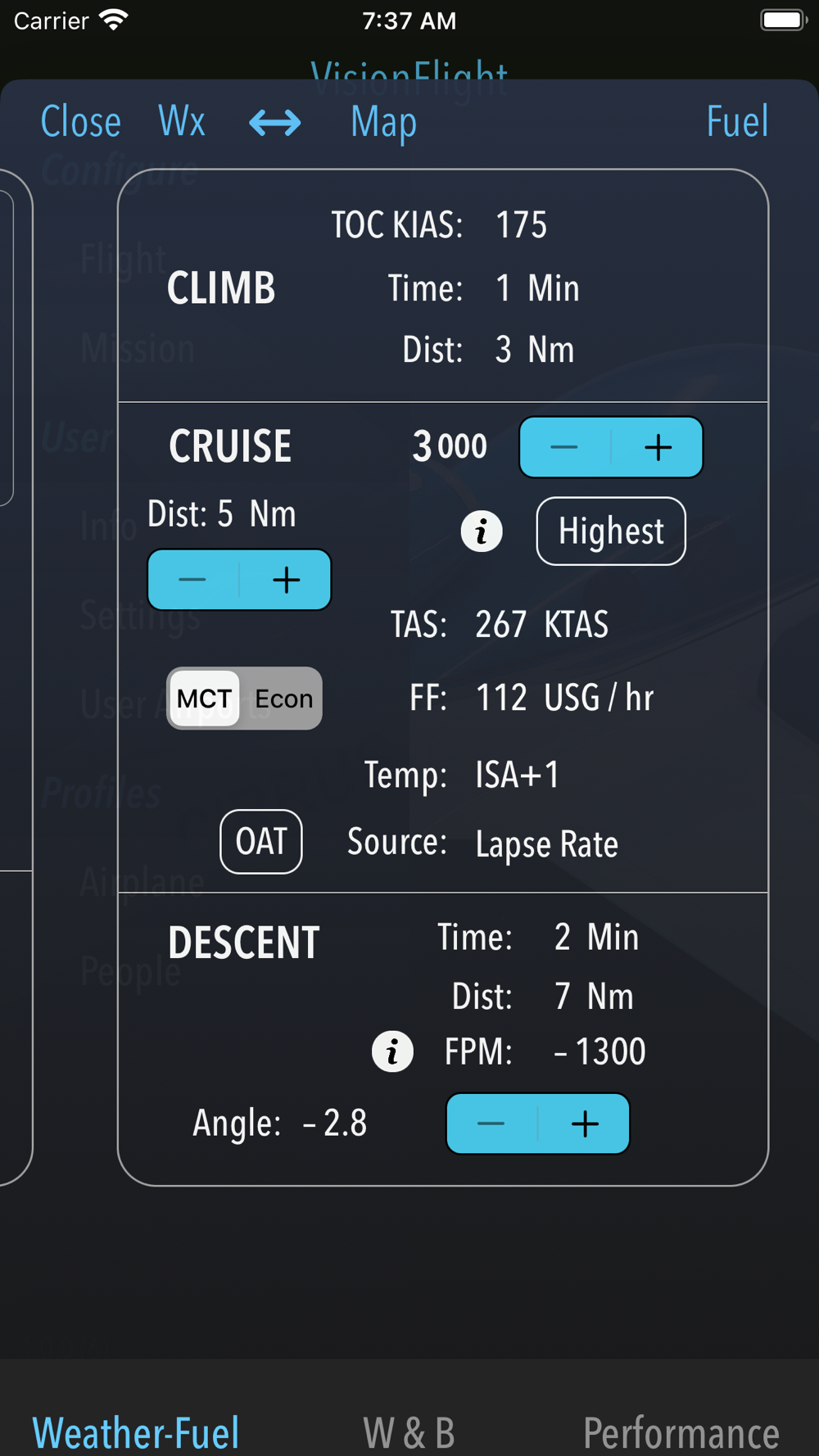 Vision ProFlite is a iPad/iPhone universal weight & balance and performance app for the Cirrus SF50 VisionJet G1 and G2 model aircraft. A performance section gives takeoff and landing distances based on current or manually entered weather conditions. A fuel section assists in fuel planning. 3D Flyover maps available in Performance Section.