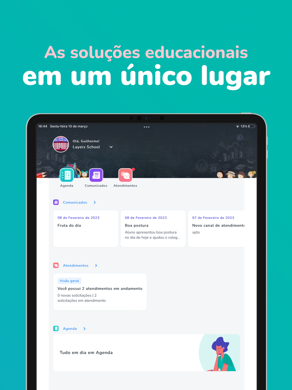 Receba as últimas informações sobre a escola, acompanhe comunicados, seja notificado sobre eventos, tenha acesso a galeria de fotos personalizada e troque mensagens de maneira simples e rápida.