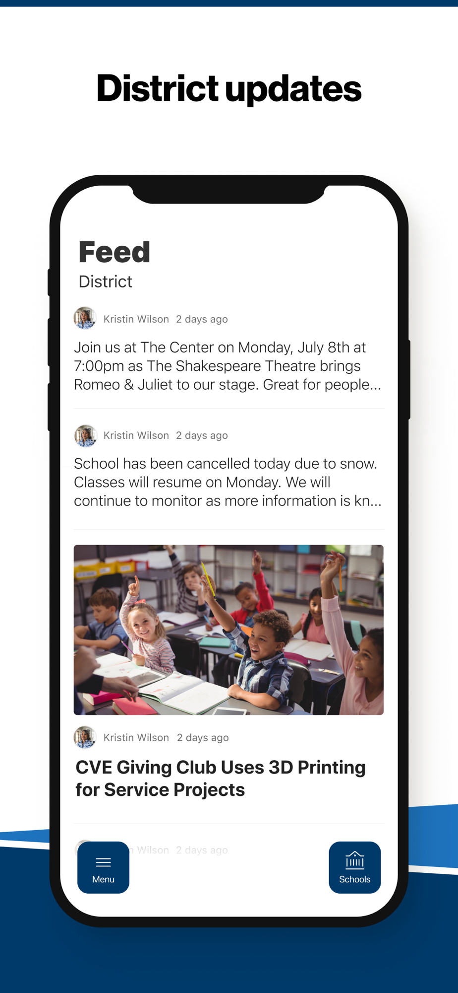 In the Live Feed is where you'll find updates from the administration about what's going on in the district right now. Whether that's celebrating a student's success, or reminding you about an upcoming deadline.