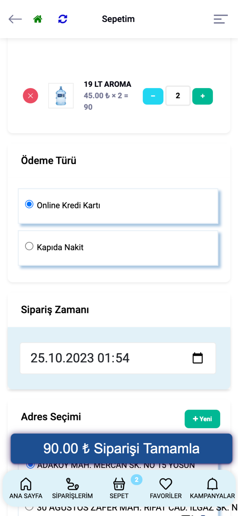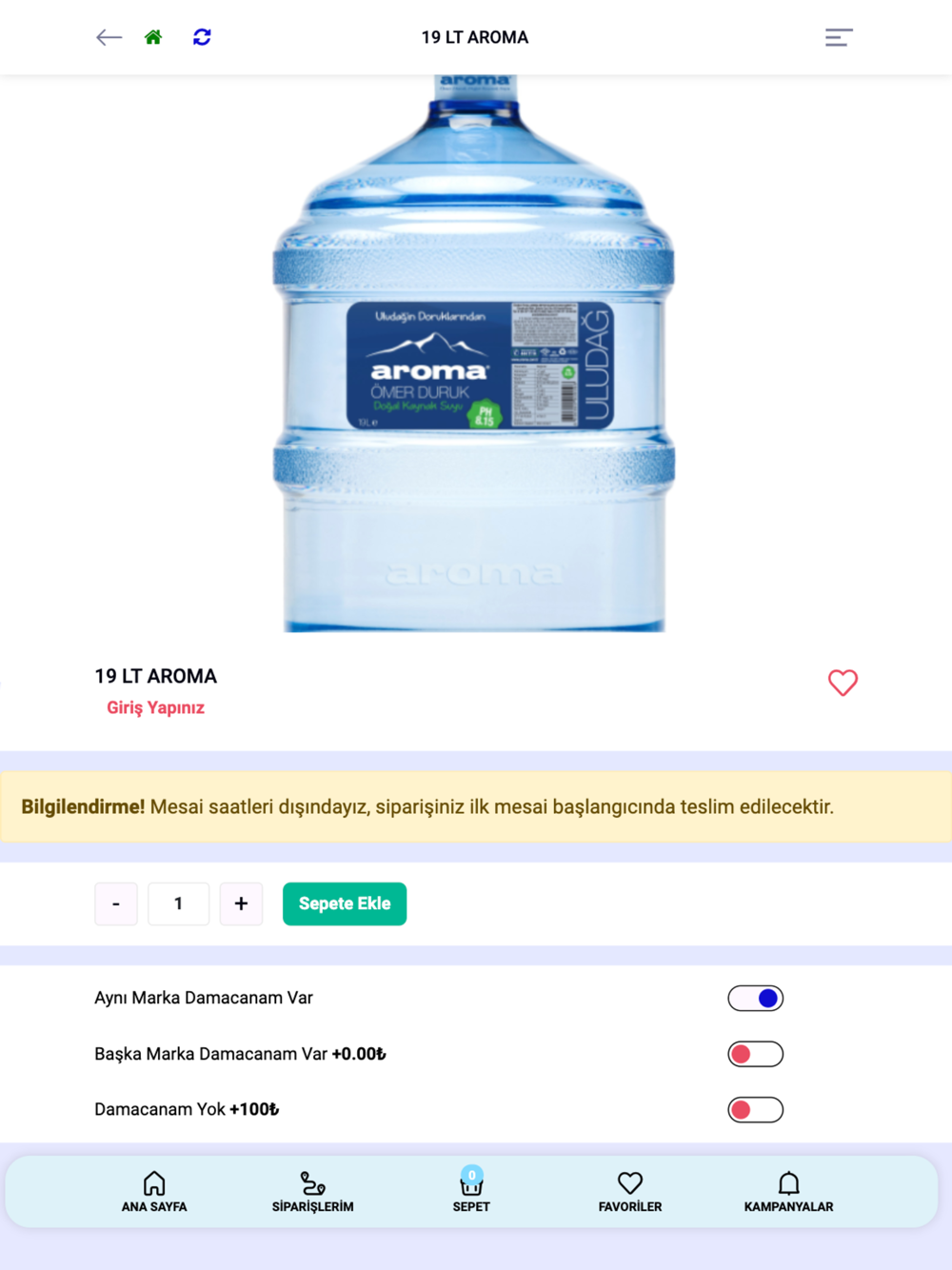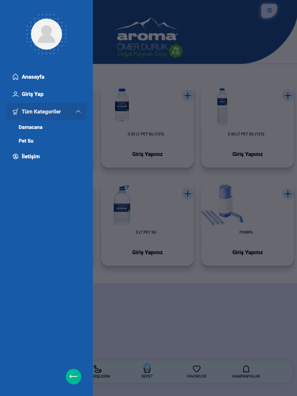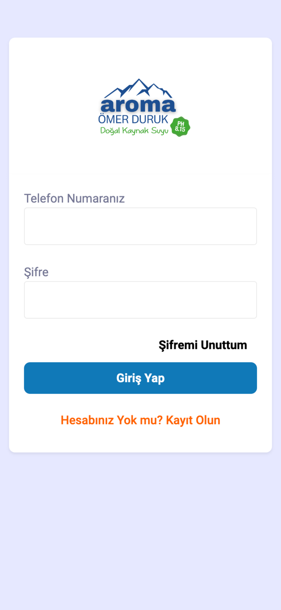 Aroma Su Mobil Sipariş Uygulaması ile sipariş vermek artık çok kolay! Damacana, Cam Damacana, Pet ve Bardak Su siparişlerinizi uygulamadan verebilir, kredi kartı ve kapıda nakit ile ödeme yapabilirsiniz.