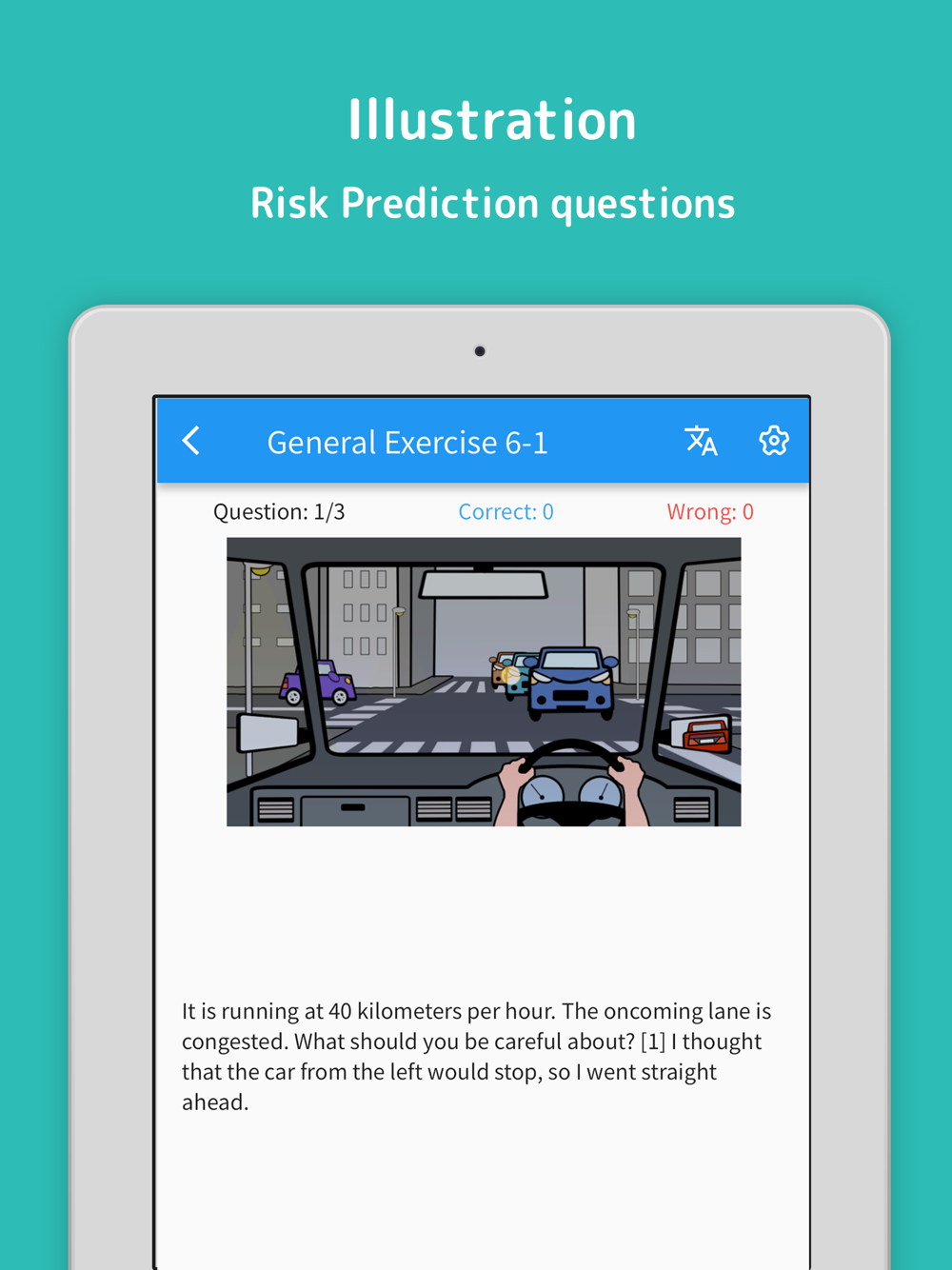 ・Includes numerous questions about road signs and hazard prediction illustrations.